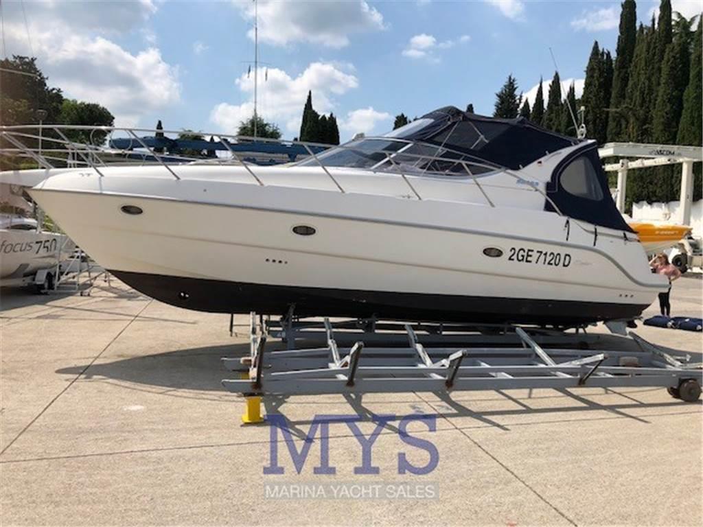 Notas internasCamera armatoriale a prua con letto alla francese Camera di poppa con letto matrimoniale Bagno separato con wc elettrico e doccia Cucina completa di lavello, fuochi, frigo e forno a microonde Notas de la instrumentaciónGps LowranceEco VHF Elica di prua Bidata Raymarine Flaps con indicatori Salpancora elettrico Carica batterie da banchina Aria condizionata Autoclave Boiler acqua calda Inpianto TV TV LCD Radio cd Passerella idraulica Notas de armamentoTeak pozzetto e plancettaBimini Tendalini di chiusura totale del pozzetto Impianto acque nere Cuscineria esterna completa |