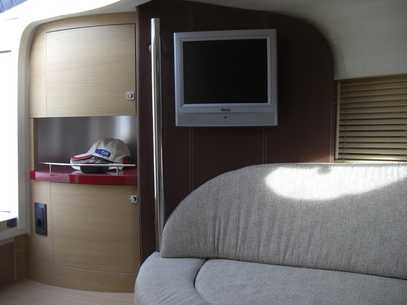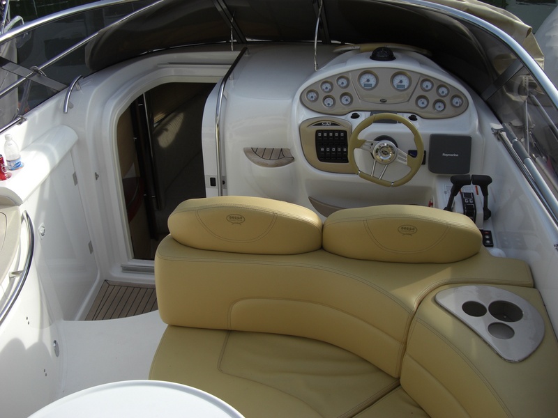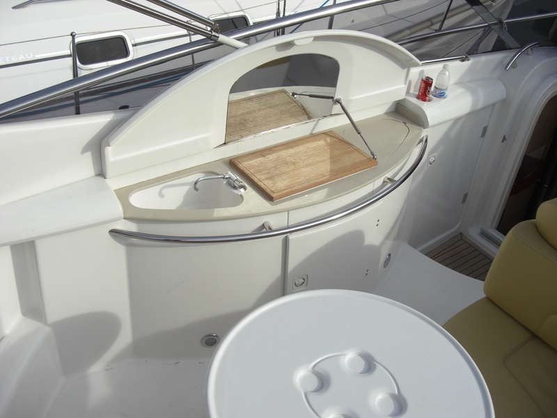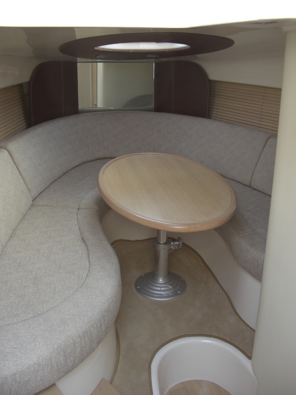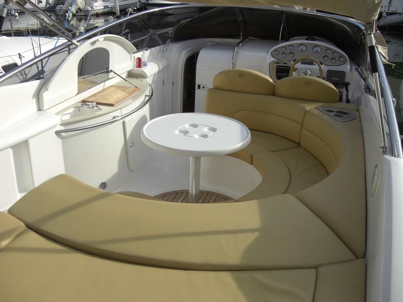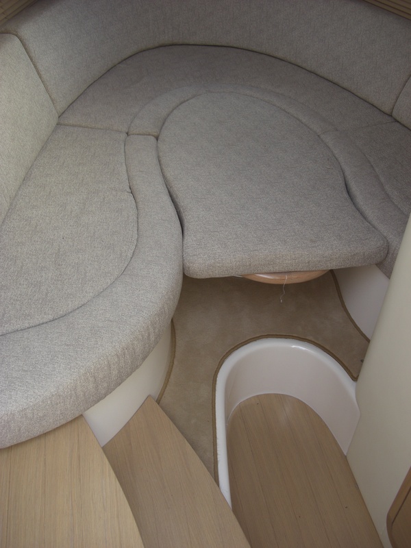 Notas internasBuque que combina la comodidad con una lÃnea decididamente deportiva. Notas de la instrumentaciónPlotter GPS Raymarine-Sounder-registro-brújulaNotas de armamentoAncla eléctrico cabrestante-baño escalera-tapa-Bimini-bow sun techo cabina cojÃn lleno cojines-mostaza-color entrada y plataforma-teca teca cabina tabla abajo 15 TV-"mosquito Kit-baño con dinette marino adicional inodoro cojÃn-estéreo dorada lateral. |