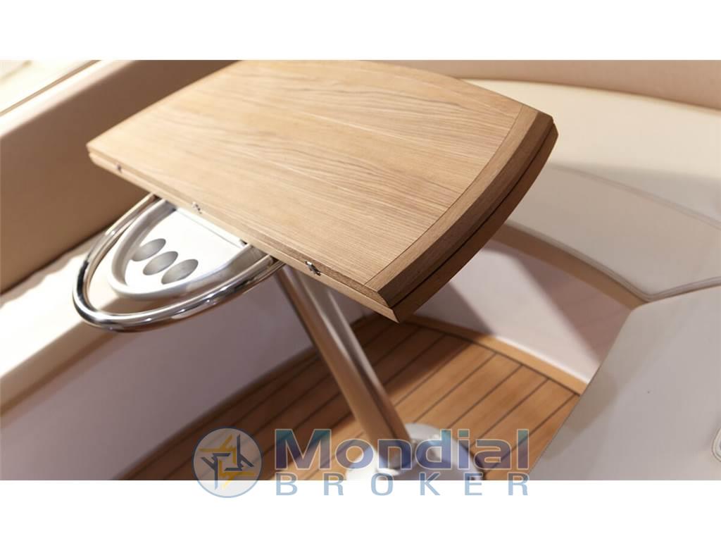 Notas internasNotas de la instrumentaciónAngolo barra, Bussola, Comando motori elettronico, Ecoscandaglio, GPS, Pilota automatico, Plotter con antenna GPS, Radio VHF, Sedile Copilota.Notas de armamentoAllestimento tecnico e di coperta:Allarme motore, Allarme sentina, Ancora, Apertura Vano Motore Elettrica, Elica di prua - bow thruster, Flap idraulici, Hard top, Impianto antincendio, Indicatori Flaps, Passerella, Piattaforma, Pompa di sentina automatica, Pozzetto Teak, Presa 220V banchina, Salpa Ancore Elettrico, Tavolo pozzetto, Tromba. Dotazioni domestiche di bordo: Aria condizionata, Impianto acque nere, Pavimento interno in legno, Prese interne 12v, Prese interne 220v, 2 WC marino elettrico. Intrattenimento: Altoparlanti, Digitale Terrestre, Impianto TV, Stereo, TV. Cucina ed elettrodomestici: Fornello, Forno, Frigorifero esterno, Frigorifero interno, Microonde, Piastra in vetroceramica. Tappezzerie: Cuscineria di poppa, Cuscineria di prua. |