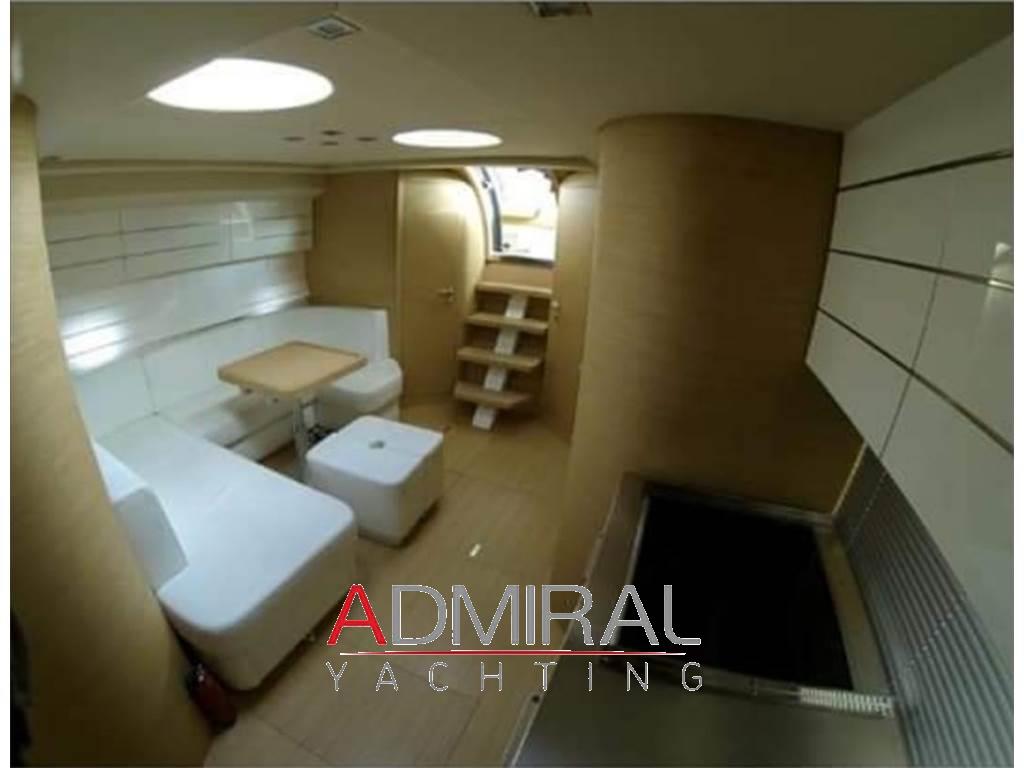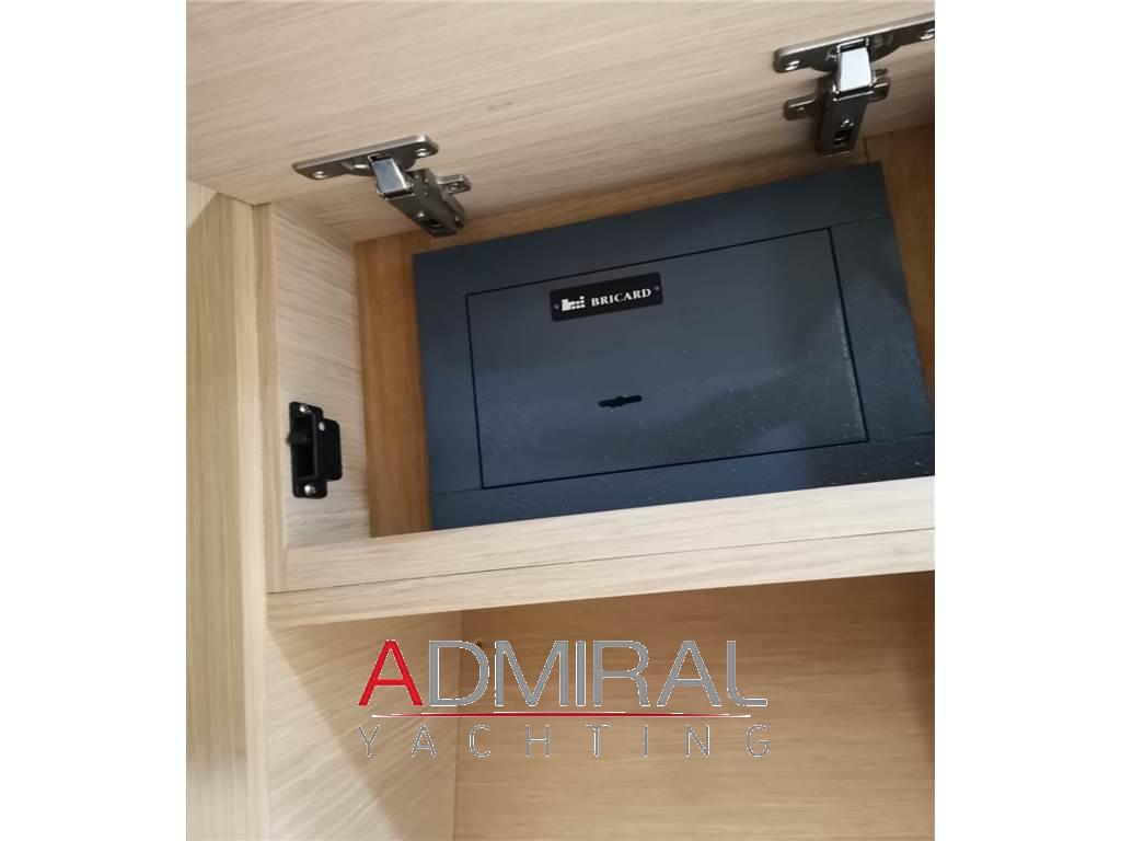 Notas de armamentoAltoparlanti, Antenna Satellitare TV, Aria condizionata, Boiler, Cappottina, Cassaforte, Clima reversibile, Cucina, Cuscineria completa, Cuscineria di poppa, Cuscineria di prua, Cuscineria Pozzetto, Decoder satellite, Frigorifero esterno, Frigorifero interno, Impianto acque nere, Impianto TV, Meccanismo saliscendi per TV, Pavimento interno in legno, Piastra in vetroceramica, Prese interne 12v, Prese interne 220v, Riscaldamento, Serbatoio Acque Nere, Stereo, Tendalino, TV, WC marino elettrico