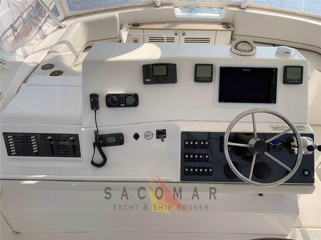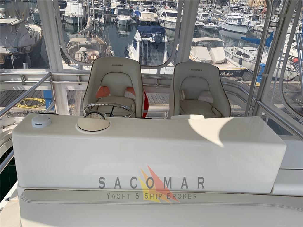 Notas internasNotas de la instrumentaciónAncora, Autoclave, Autogonfiabile, Batterie, Bussola, Contamiglia, Doccia esterna, Ecoscandaglio, Elica di prua - bow thruster, Flap idraulici, GPS, Piattaforma, Pilota automatico, Pompa di sentina automatica, Pompa di sentina manuale, Raddrizzatore, Radio VHF, Salpa Ancore Elettrico, Scaletta da bagnoNotas de armamentoAria condizionata, Boiler, Cucina, Cuscineria completa, Frigorifero interno, ICE Maker, Impianto TV, Lavastoviglie, Stereo, Telo Copertura Fly, TV, WC marino elettrico |