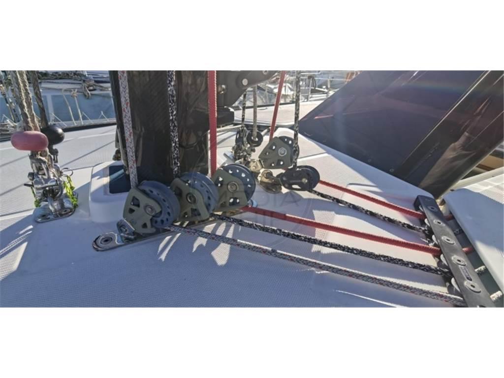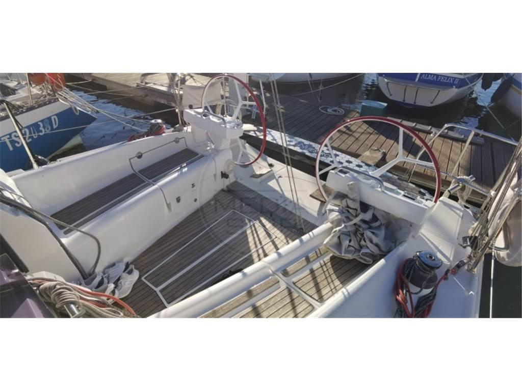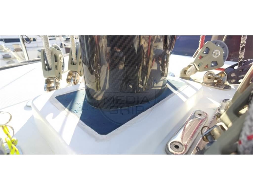Notas internasNotas de la instrumentaciónBussola, Ecoscandaglio, GPS, Log, Pilota automatico, Radar, Radio VHF, Stazione vento.Notas de armamentoAllestimento tecnico e di coperta:Ancora, Passerella, Pompa di sentina elettrica, Scaletta da bagno, Winch. Dotazioni domestiche di bordo: Riscaldamento. Dotazioni di sicurezza: Zattera di salvataggio. Cucina ed elettrodomestici: Fornello (Gas), Forno, Frigorifero interno (Electric). Tappezzerie: Cappottina. Vele: Randa, Fiocco, Avvolgi Fiocco. |