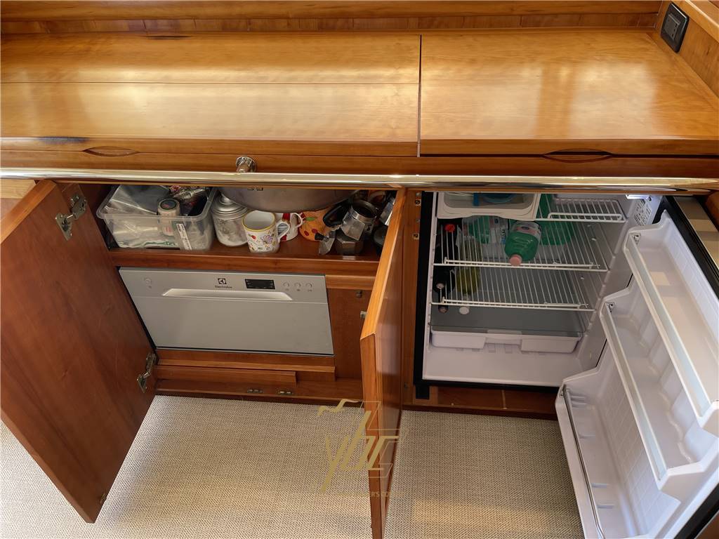 Notas internasGli interni, rifiniti in ciliegio con trattamento a cera non lucido, creano un’atmosfera calda e raffinata. Sotto coperta, l’imbarcazione offre tre cabine spaziose e due bagni completi, ciascuno dotato di bidet e doccia, per il massimo comfort a bordo. La cabina armatoriale si trova a prua, cabina ospiti con due letti in piano e una cabina con letto alla francese. La disposizione degli spazi garantisce privacy e comodità per tutti gli ospiti, rendendo l’ambiente accogliente e funzionale per una permanenza prolungata. Notas de la instrumentaciónGPSRadar Ecoscandaglio Contametri catena Salpa ancora elettrico Bussola VHF Elica di prua Notas de armamento- Porta di chiusura scorrevole a poppa ( diverso da STD)- Finestrone apribile parabrezza con movimentazione elettrica che si solleva all'esterno verso l'alto ( modifica richiesta dall'armatore in costruzione) - Antenna TV - Impianto TV dinette smart TV - Impianto stereo - Lavastoviglie n°6 coperti - Aria condizionata dinette e zona notte - Serbatoio acqua n°2 autoclavi - Winch pozzetto - Generatore Mase 3,5 kw - Tender Lift - Mobile pozzetto con lavabo e frigorifero - N°2 scaletta bagno plancetta di poppa |