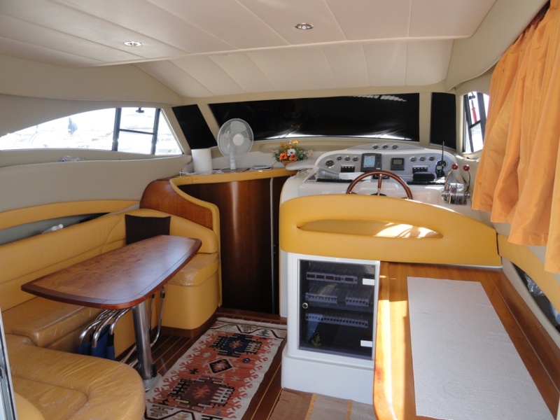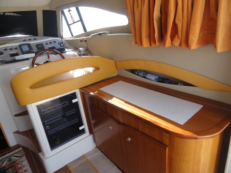 Notas internasNotas de la instrumentaciónBuscador-Vhf-Radio cd-arco hélice-piloto automático-tv con antena Connexus-aletas-caliente agua calderas eléctricas Chigre hidráulico pasarela-nevera + congelador-timón ángulo-base BaterÃa cargador de pescado - Navionics Gps 2-2Notas de armamento-Cabina teca y baño plataforma-Fly Bimini top-resto gafas cubierta externa completan cojines cojines, comedor Interior nuevo |
