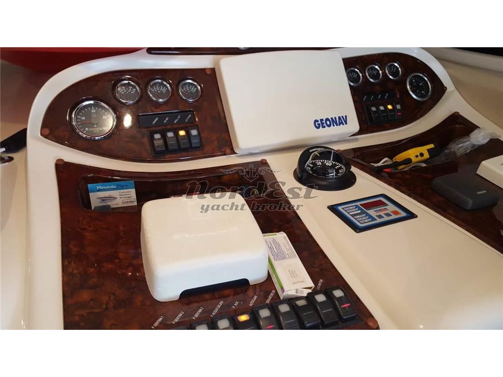 Notas internasAria condizionata: Presente Impianto stereo Impianto TV Tv Bagni: 1 Cabine: 2 Posti letto: 4 Cucina Frigorifero Notas de la instrumentaciónPilota automatico: Presente Ecoscandaglio: Presente GPS: Presente Plancetta: in teak Vhf: Presente Notas de armamentoDESCRIZIONE IMPIANTISTICA Refitting interni 2020, plancetta, passerella e pozzetto teak massello da 1 cm rifatti 2021 GPS, ecoscandaglio, VHF, contacatena, pilota automatico su plancia e fly nuovo 2022. Aria condizionata caldo/freddo Climma. Boiler, doccia interna ed esterna. Generatore Mase 5,5 kw rifatto a zero ore. Copertura invernale pozzetto e fly. Verricello elettrico, luci subacque di poppa. Passa scafi e prese mare 2022 4 batterie nuove 2022 da 180 kilowatt Fiamm. ----- Impianto antincendio Contacatena Copertura pozzetto Cuscineria prendisole Doccia esterna Flaps Frigorifero esterno Luci di cortesia |