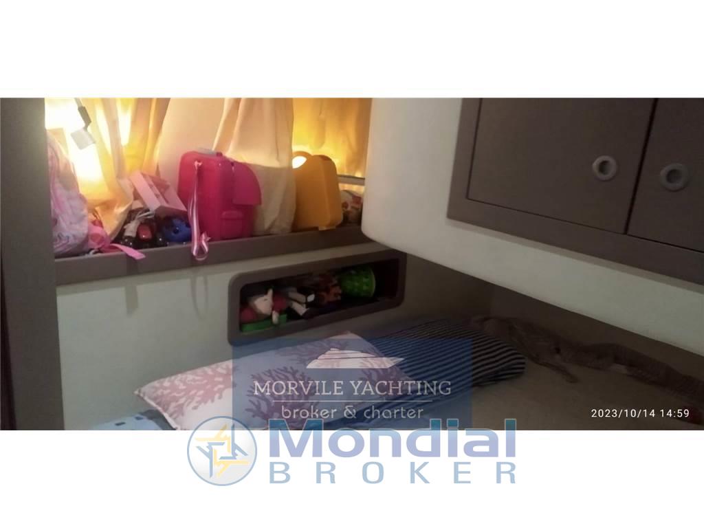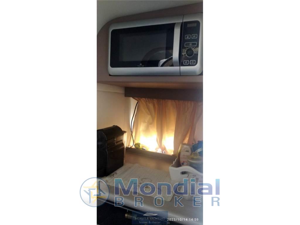 Notas internasCabine: 2 Toilette: 1 Impianto stereo Impianto TV Tv Bagni: 1 Cabine: 2 Cucina Forno a microonde Forno Congelatore Notas de la instrumentaciónImpianto elettronico- Ecoscandaglio - Log-contamiglia - Ripetitore(i) - Impianto TV - Centrale di navigazione - Plotter - Pilota automatico - Radio - Bussola - Lettore CD - GPS - Altoparlanti di pozzetto - VHF Pilota automatico Baromentro Bussola Comandi flaps Contamiglia Ecoscandaglio GPS GPS-Plotter Log Vhf Notas de armamentoCoperture/Tendalini- Tendalino pozzetto: BIMINI TOP FLY Equipaggiamenti Elettrici - Presa corrente a terra Equipaggiamenti interni - Elica di prua - Pompa di sentina elettrica - Forno - Pompa di sentina manuale - Microonde - WC marino - Aria condizionata - WC elettrico - Riscaldamento - Acqua calda - Frigorifero - Congelatore - Caricabatterie Dotazioni Esterne - Doccia pozzetto - Passerella idraulica - Pannelli solari - Autogonfiabile - Cuscineria pozzetto Cuscineria Frigorifero esterno Scaletta: 1 Tavolo nel pozzetto |