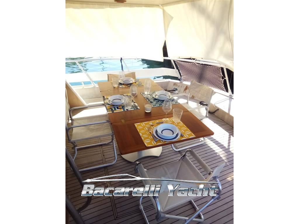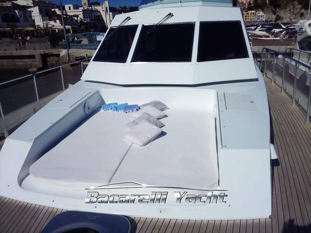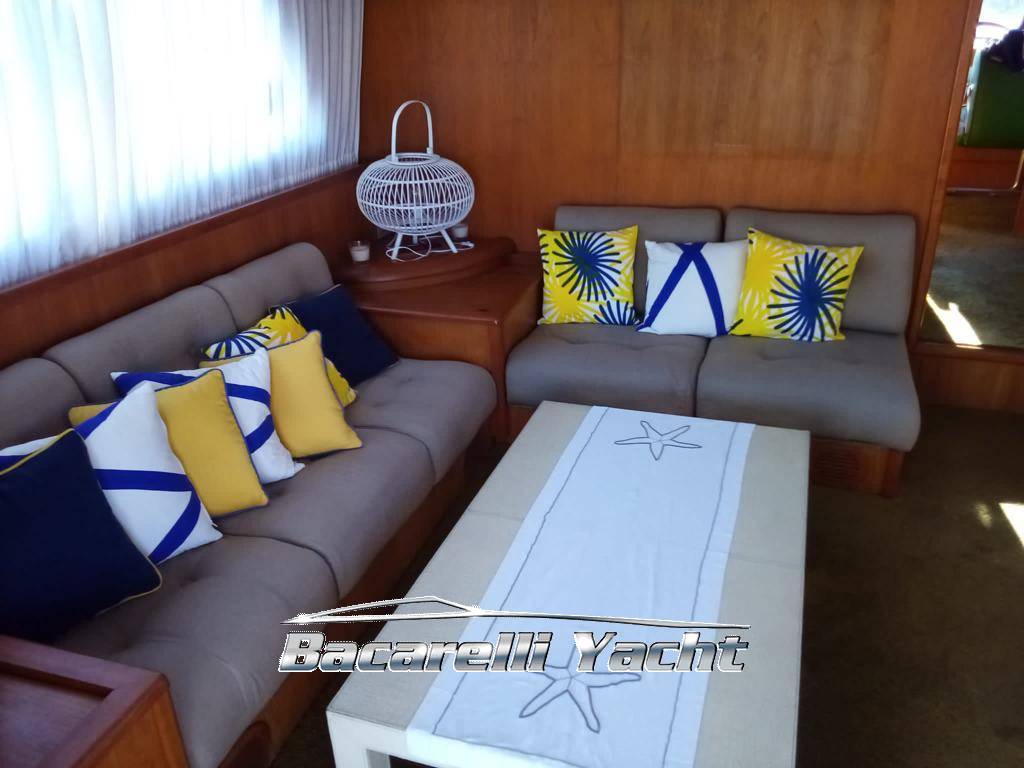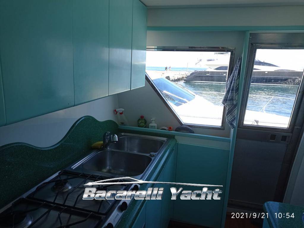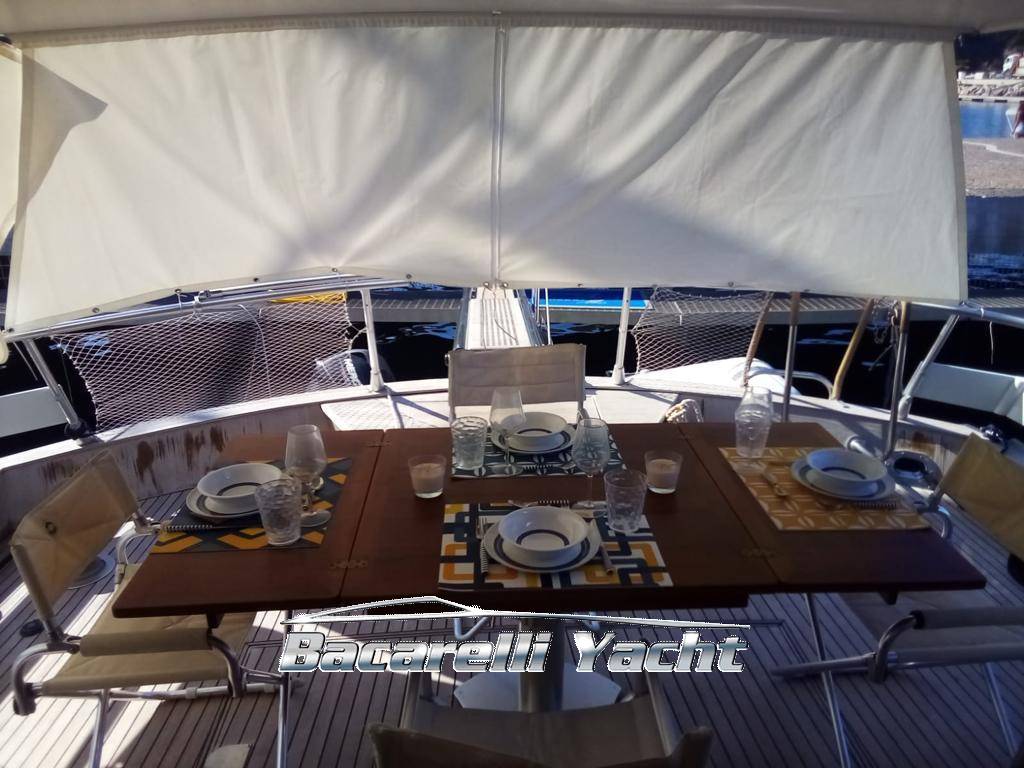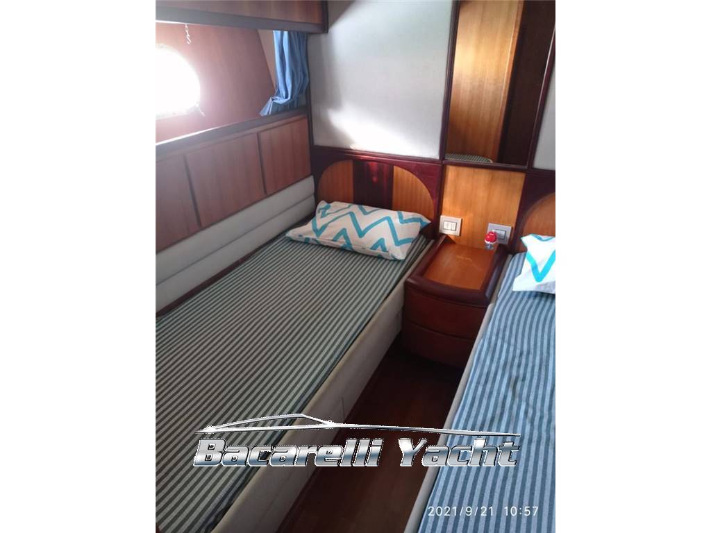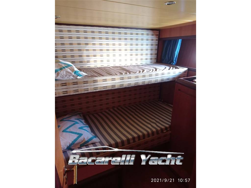 Notas internas3 cabine+ 1 crew 1 cabina armatoriale di pura con letto matrominiale e bagno in camera 1 cabina vip con letto matrimoniale e bagno 1 cabina ospiti con letti in piano e bagno dinette ponte superiore ad "L" cucina full Notas de la instrumentaciónAngolo barrabussola magnetica gps ecoscandaglio radar generatore di corrente Notas de armamentoPasserella idraulicatender aria AC in tutti gli ambienti cucina con frigo casalingo cuscinerie complete e tendaggi generatore mase dissalatore |