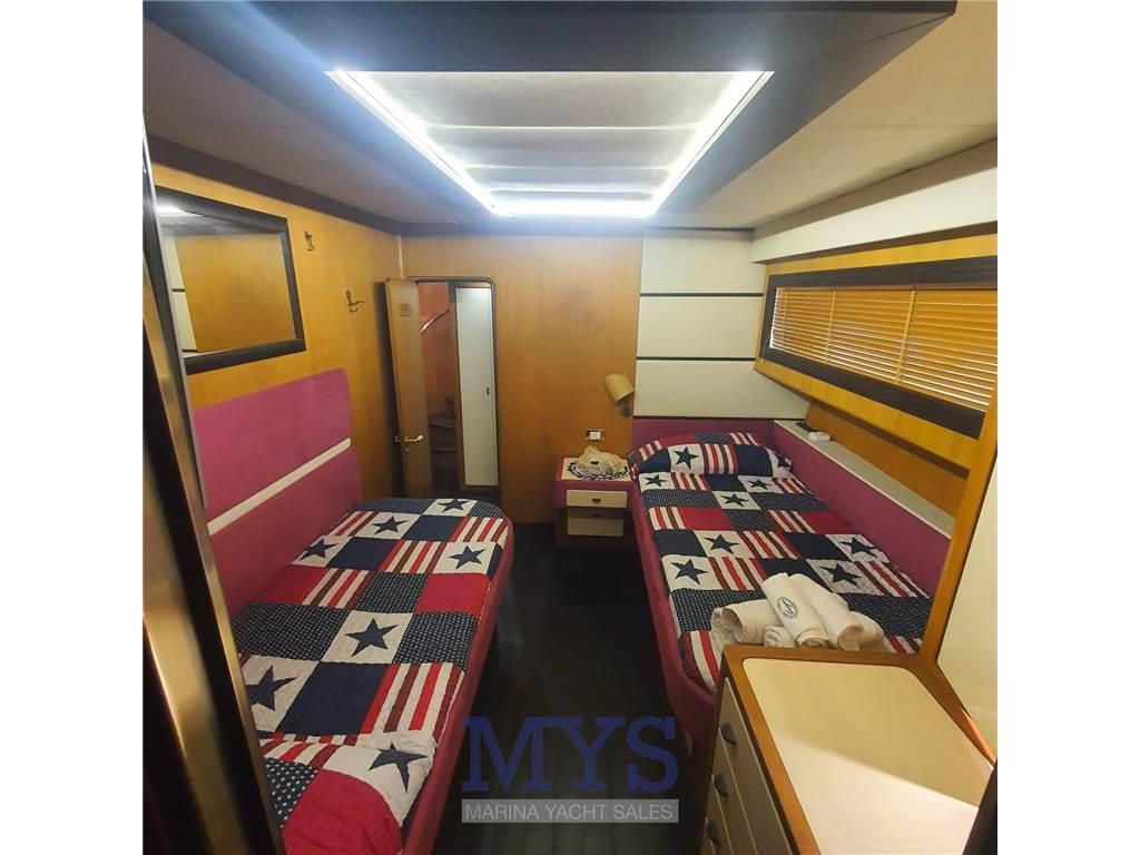Notas internas4 BAGNI 2 Cabine matrimoniali dotate di bagni completi di lavabo,doccia e WC marino elettrico 2 Cabine doppie con letti in piano dotate di bagni completi di lavabo,doccia e WC marino elettrico 1 Cabina equipaggio con 3 posti letto e bagno completo di lavabo,doccia e WC marino elettrico 1 Cucina completa di lavandino,fornello a gas,forno,congelatore,frigo, micronde e lavastoviglie 1 Salone con divani e tavolo Notas de la instrumentaciónAISAllarme motore Ancora Angolo barra Antenna radar Autoclave Altoparlanti Antenna Satellitare TV Aria condizionata Batterie Bussola Boiler Caricabatterie Comando motori elettronico Contametri catena Contamiglia Dissalatore Doppia timoneria Ecoscandaglio Flap idraulici GPS Inverter Impianto antincendio Indicatori Flaps Lavaggio catena Luci di cortesia Pilota automatico Radar Raddrizzatore Riscaldamento Stereo Salpancora Elettrico Tromba VHF Notas de armamentoCappottinaCassaforte Camminamenti laterali in teak Cuscineria di poppa Doccia esterna Frigorifero esterno Gruette Pavimento interno in legno Passerella Piattaforma Pozzetto Teak Presa 220V banchina Rollbar Scaletta da bagno Telo Copertura Fly Tendalino |