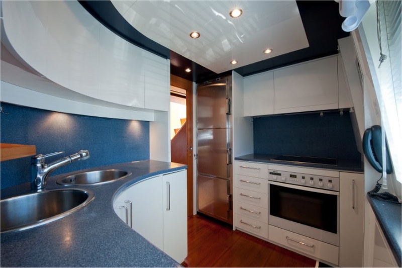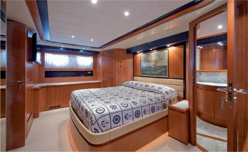 Notas de armamento-Onan generadores-aire acondicionado-maniobras hélice en proa Passerella idraulica cerrado circuito sistema de TV con grúa de oferta de monitor en el tablero en el móvil de la mosca sobre la marcha con nevera, máquina de hielos y fregadero-nevera-bar en la máquina de lavado de salón y congelador en popa locker-inversores-Bimini top-cabrestante proa con deformación Bell-dos cabrestantes popa-satélite antena TV-40 "LCD TV y Hi-Fi en el salón-32 ' LCD TV y Hi-Fi en dueño de la cabina-Hi-Fi en otras cabañas.