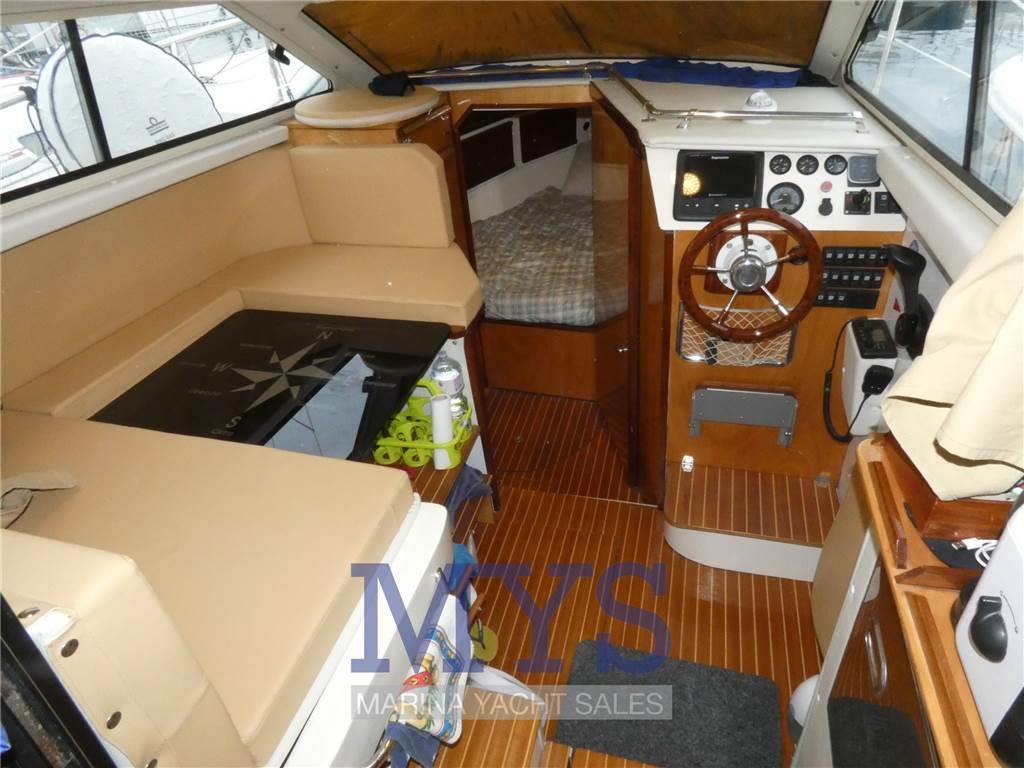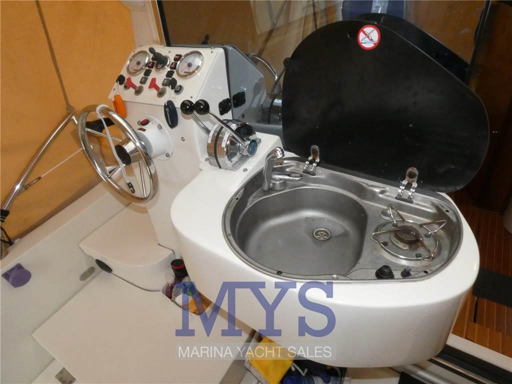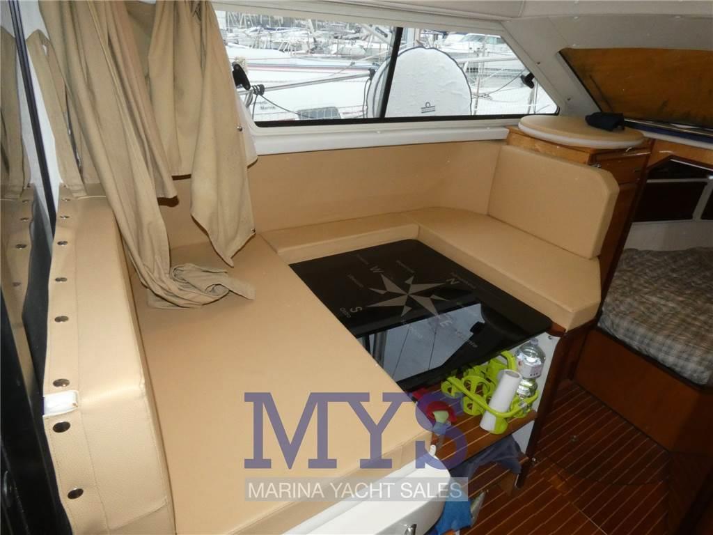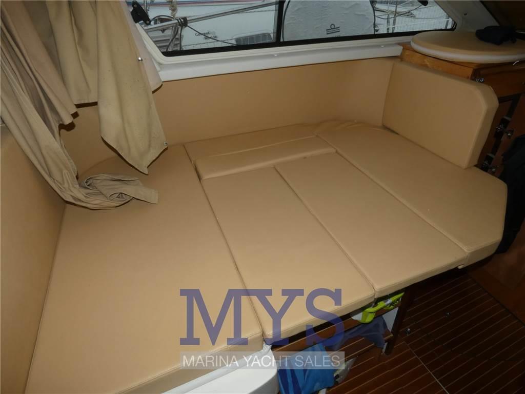 Notas internasCuccetta armatoriale a prua con letto matrimoniale Dinette trasformabile con divano e tavolo da pranzo Bagno separato con lavabo e wc marino elettrico Angolo cottura interno con fuoco a gas e frigo, nel pozzetto lavello e un altro fuoco a gas Notas de la instrumentaciónBussolaGPS/Eco Raymarine VHF Salpa ancora Elettrico Flaps idraulici con indicatore Tromba Presa 220V da banchina Caricabatterie Autoclave Riscaldamento Webasto Prese interne 12v Impianto TV TV Notas de armamentoAncoraCuscineria completa Porta ingresso Portacanne Vasca del vivo Tendalino Chiusura completa pozzetto Lavandino e fuoco nel pozzetto Tavolo nel pozzetto Doccia esterna Piattaforma fissa Scaletta da bagno |