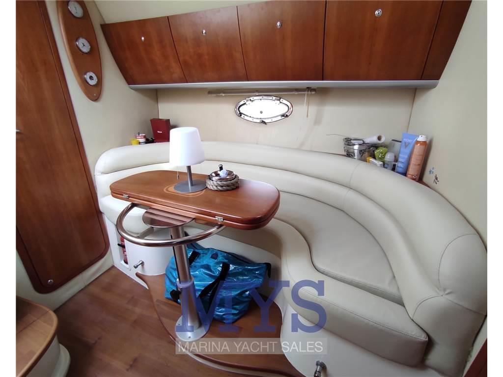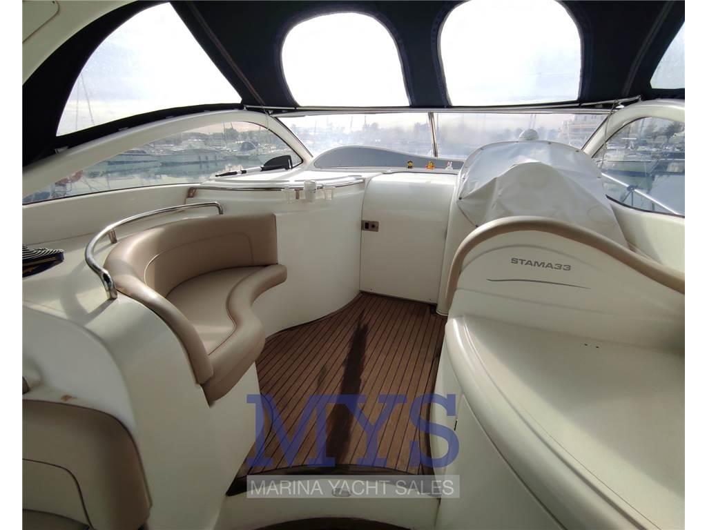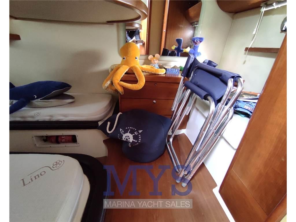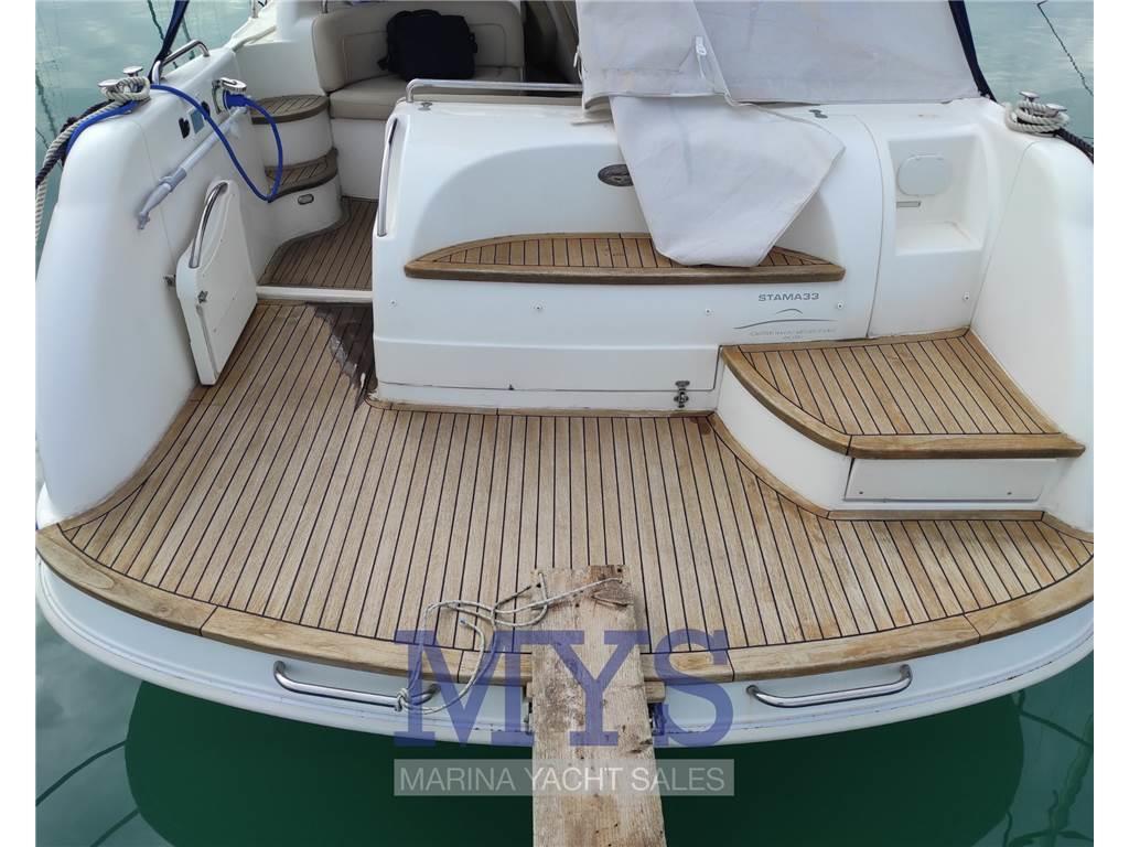 Notas internasCabina matrimoniale armatoriale di prua Cabina doppia in piano a poppa Cucina completa di frigo,fornello, lavandino e forno micronde Bagno completo di lavabo,doccia e WC elettrico Gli interni sono aerati e luminosi, sono caratterizzati da una notevole altezza; da segnalare la cabina ospiti, tra le più comode in assoluto per il particolare tipo di configurazione, tenuto conto che è del tutto simile, per dimensioni, a quella della Stama 37. La zona cucina è razionale e ben attrezzata, si integra perfettamente con l'arredamento del quadrato. Notas de la instrumentaciónBussolaGPS Ecoscandaglio Comando motori elettronico Pilota automatico Elica di prua - bow thruster Salpancora Elettrico Quick 1200W Flaps idraulici Indicatori Flaps VHF Presa 220V da banchina Caricabatterie Prese interne 12v Prese interne 220v Altoparlanti Stereo Frigorifero esterno Autoclave Boiler per l'acqua calda Generatore Mase 2,5kw Notas de armamentoAncora bruce da 12 kgRollbar Cappottina Copripozzetto Cuscineria completa Tendalino Pozzetto in Teak Doccia esterna Passerella Piattaforma fissa in teak Scaletta da bagno Tavolo pozzetto |