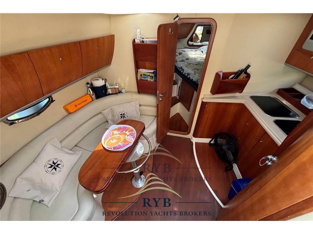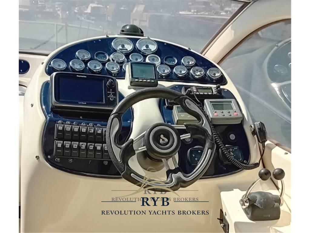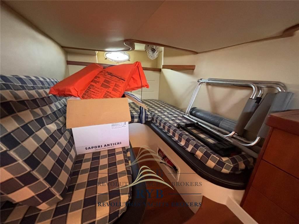 Notas internasNotas de la instrumentaciónBussola, Comando motori elettronico, Computer di bordo, Contamiglia, Ecoscandaglio, GPS, Pilota automatico, Radar, Radio VHF.Notas de armamentoAllestimento tecnico e di coperta:Allarme motore, Ancora, Autogonfiabile, Doccia esterna, Elica di prua - bow thruster, Flap elettrici, Passerella, Piattaforma, Pompa di sentina automatica, Pompa di sentina manuale, Porta ingresso, Pozzetto Teak, Presa 220V banchina, Raddrizzatore, Salpa Ancore Elettrico, Scaletta da bagno, Tavolo pozzetto, Tavolo Salone Abbattibile. Dotazioni domestiche di bordo: Pavimento interno in legno, Prese interne 12v, Prese interne 220v, WC marino elettrico. Intrattenimento: Altoparlanti, Impianto TV, Stereo, TV. Cucina ed elettrodomestici: Cucina, Fornello, Frigorifero esterno, Frigorifero interno. Tappezzerie: Bimini, Cappottina, Cuscineria completa, Cuscineria di poppa, Cuscineria di prua, Tendalino. |