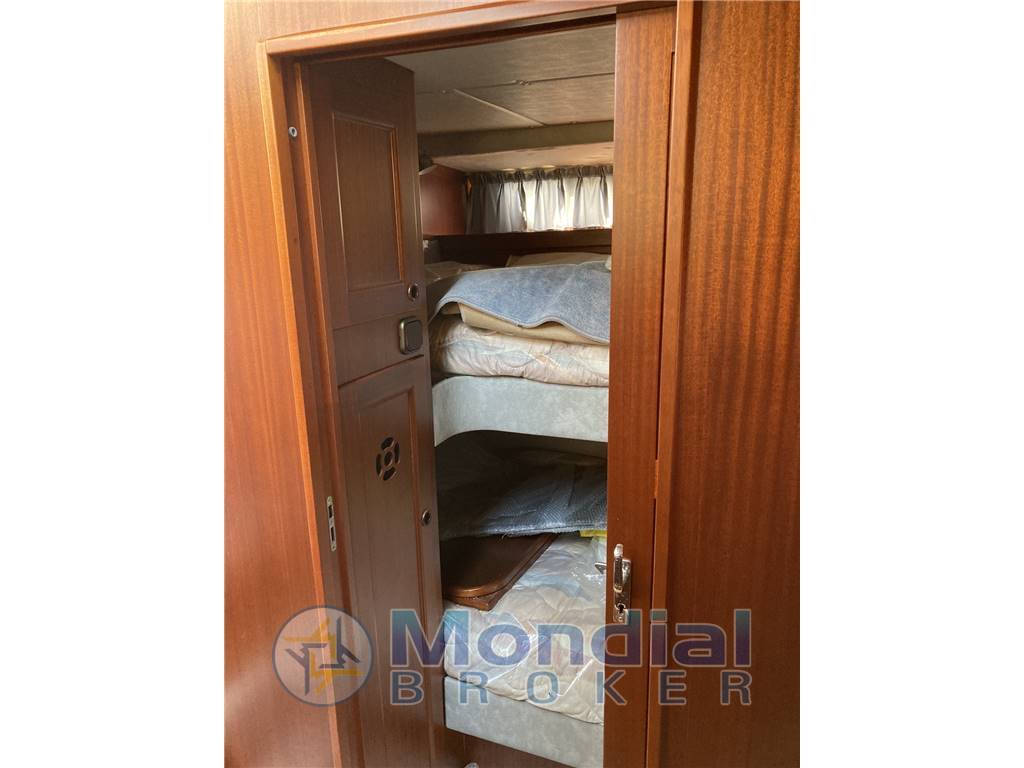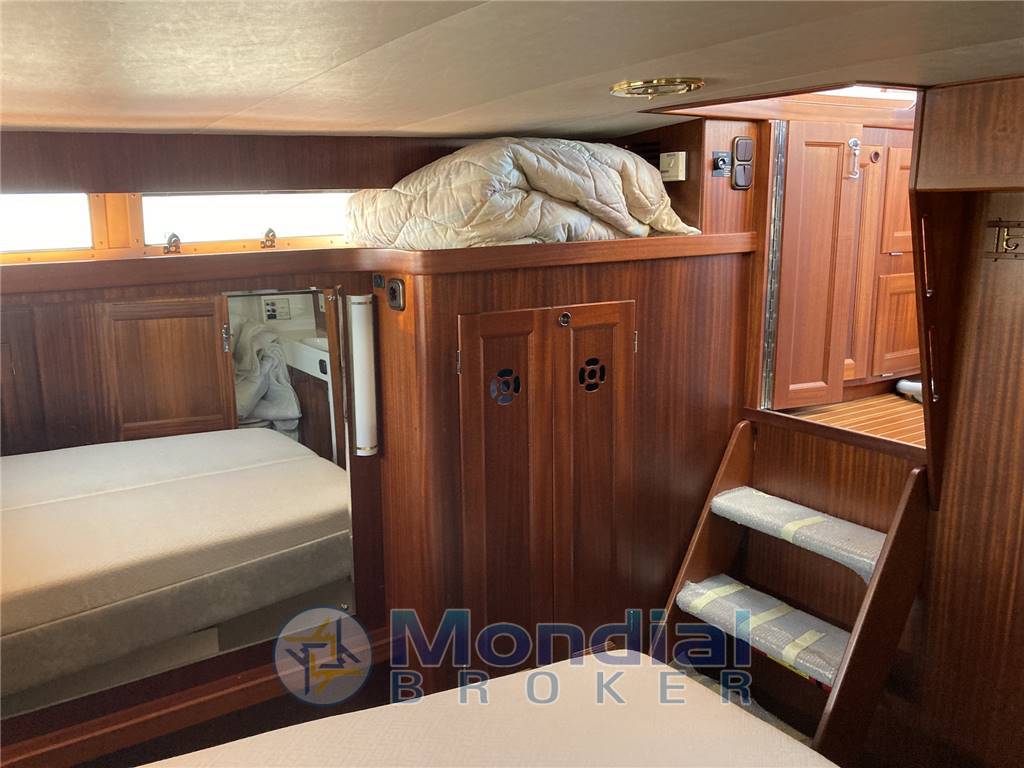 Notas internasLayout con cabina ospiti doppia al posto della dinette sottocoperta, opposta alla cucina. Cucina con piano cottura a 2 fuochi, frigorifero 90lt, freezer 60lt, forno. Tavolo carteggio Tre cabine doppie e due bagni con doccia separata. Notas de la instrumentaciónNr 2 Autopilota Robertson AP300 01, Radar R41X, Echo, Log, Chartplotter, Vhf, Gps.Faro di ricerca con telecomando, Monitor batterie, Cavo banchina 25mt. Generatore Westerbake 6Kw, Caricabatterie automatico, Nr 2 Batterie da 170Ah. Notas de armamentoSalpancora elettrico con telecomando a poppa, 80mt catena da 6mm, Contacatena, Ancora Bruce, Bompresso con pulpito;Serbatoio aggiuntivo carburante da 400lt per totali 2000lt, Pompe di sentina elettriche, Boiler, Serbatoio acque nere 8lt, Riscaldamento Eberspacher con radiatori, Aria condizionata; IceMaker, Radiocassetta con 4 altoparlanti, Tv 15" + Antenna, Lavasciuga. Luci da ormeggio, Copertura fly, Prendisole, Bimini top, Tetto apribile a poppa e copertura, Parasole, Gruette inox per tender, Doccia esterna, Passerella idraulica, Piattaforma bagno integrata con scaletta bagno inox con catena di sicurezza, Nr 2 Zattere da 6 persone (container + borsa). |