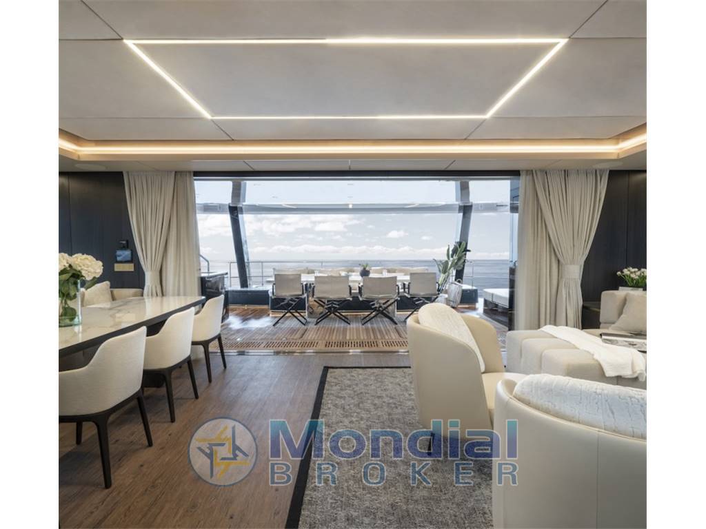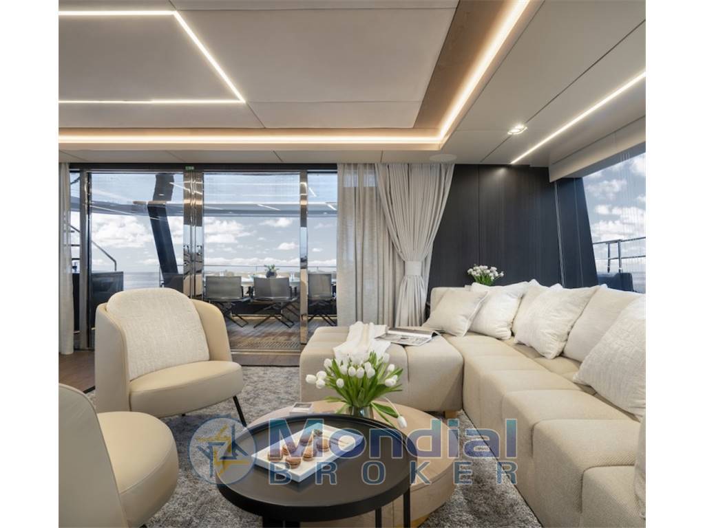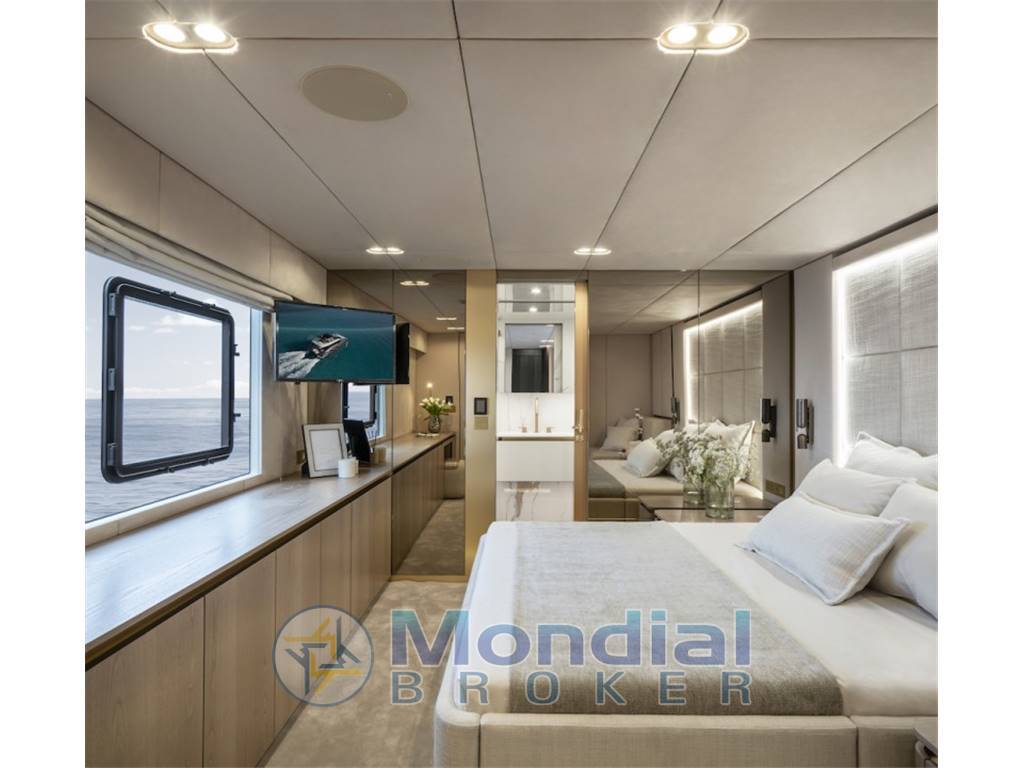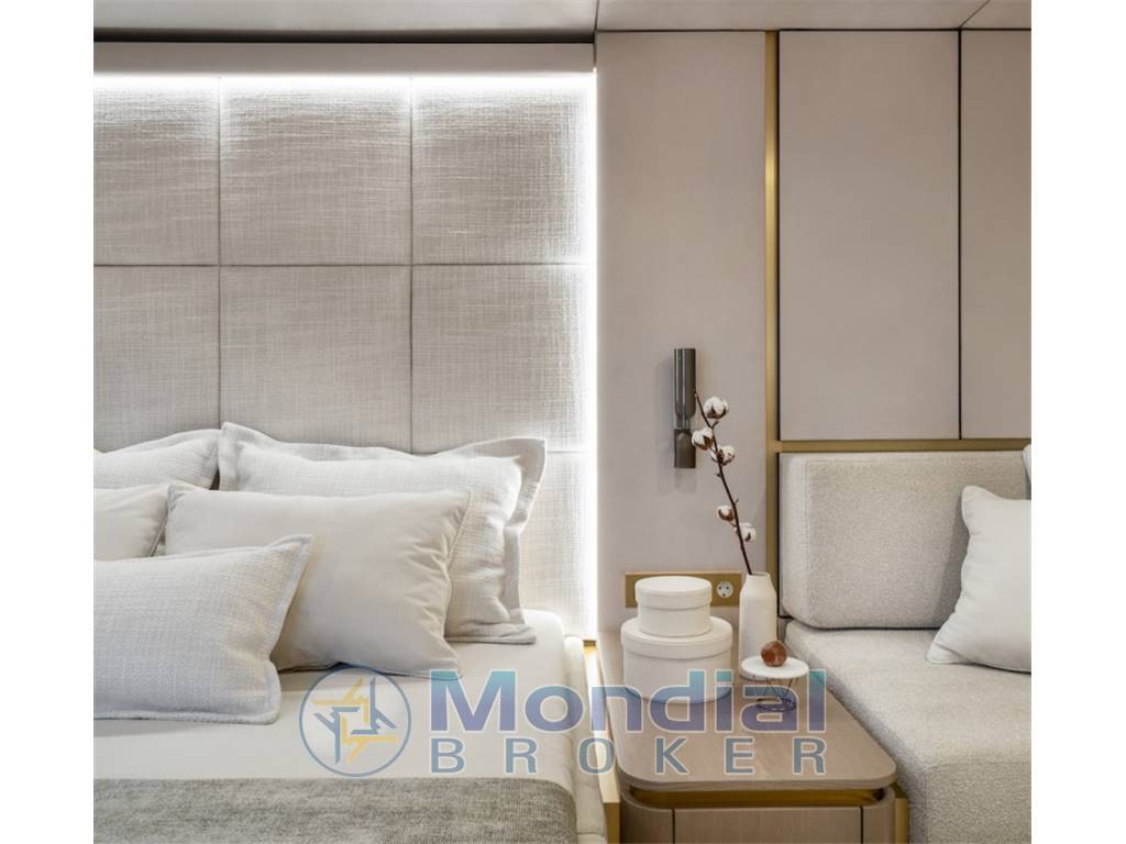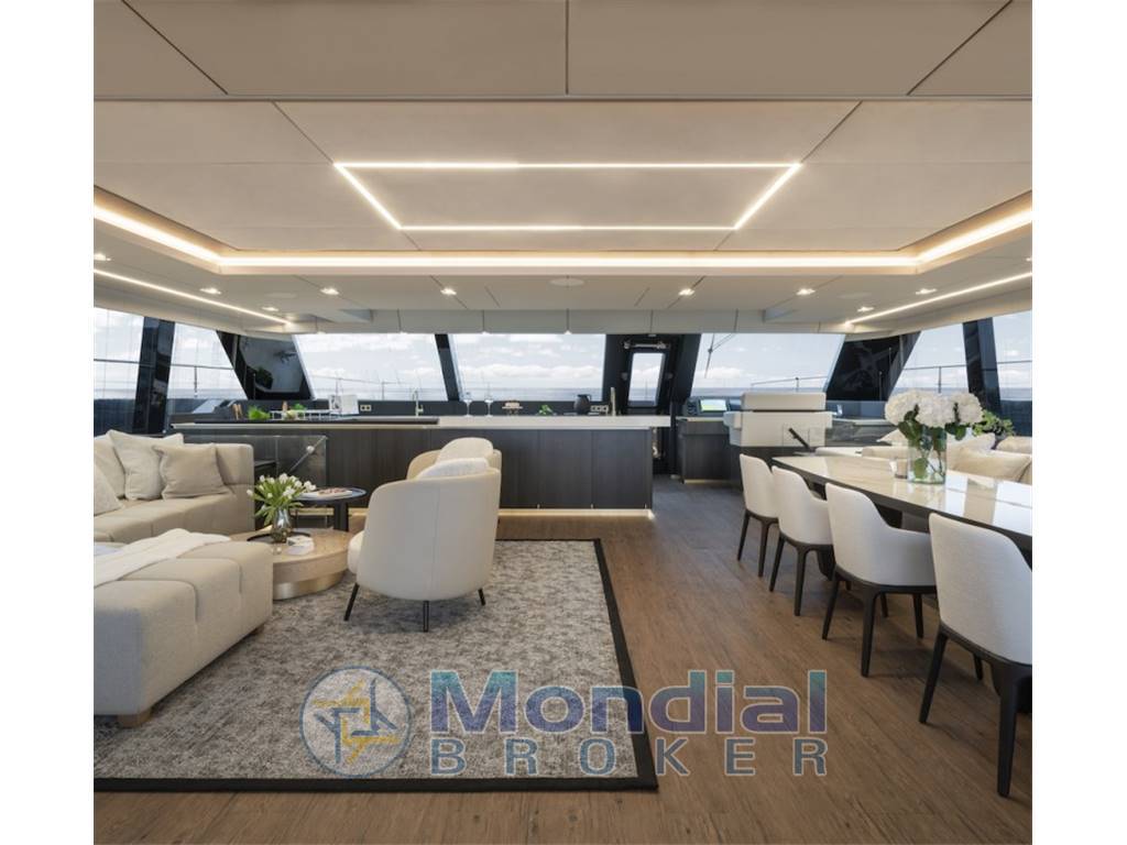 Notas internasIl salone principale del catamarano a motore SUNREEF 80 presenta un divano a L di grandi dimensioni e comode poltrone, a dritta c'è un lungo tavolo da pranzo per un massimo di 10 ospiti. La cucina completamente attrezzata dispone di un ampio ripiano ideale per servire bevande e antipasti o per ospitare spettacoli di cucina dal vivo durante le crociere. La cucina offre anche un accesso diretto al ponte di prua a tutto baglio. Il layout a cinque cabine del catamarano a motore SUNREEF 80 comprende una grande suite armatoriale con letto matrimoniale, cabina spogliatoio, scrivania e divano. Le sistemazioni per gli ospiti dispongono anche di una cabina VIP e due cabine ospiti con letti gemelli convertibili, nonché una cabina per bambini con letti a castello.