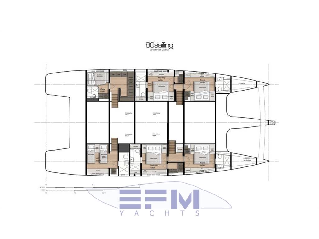 Amazing threedeck 80' sail catamaran in TOP condition. Always only privately used. 5 cabins ensuite + 1 crew cabin. Fully equipped Hampton style decor |