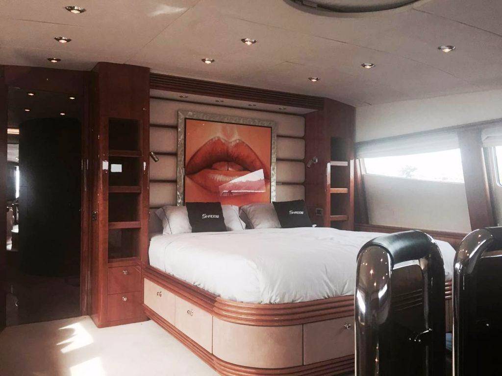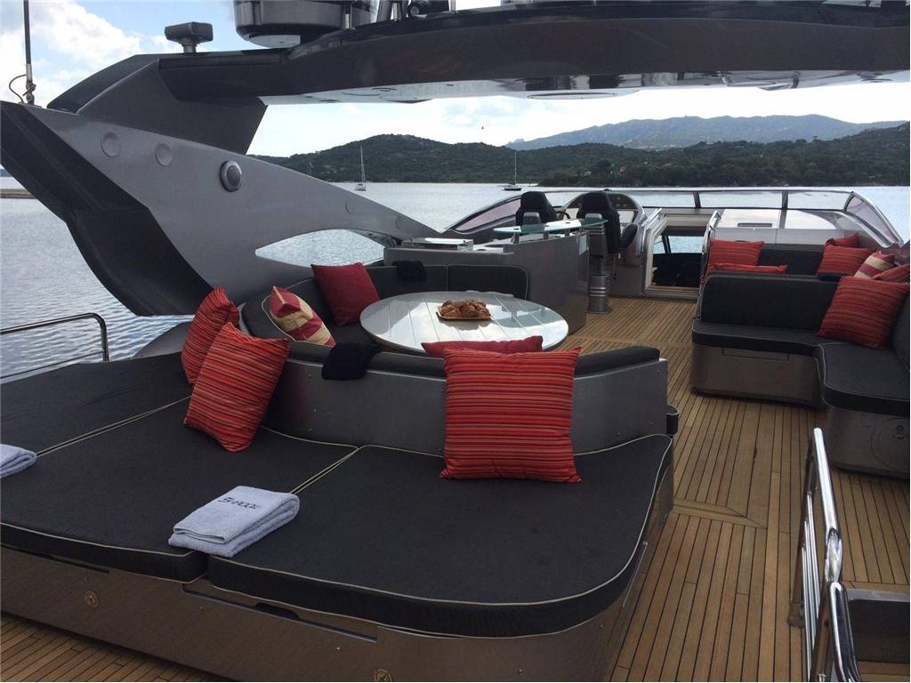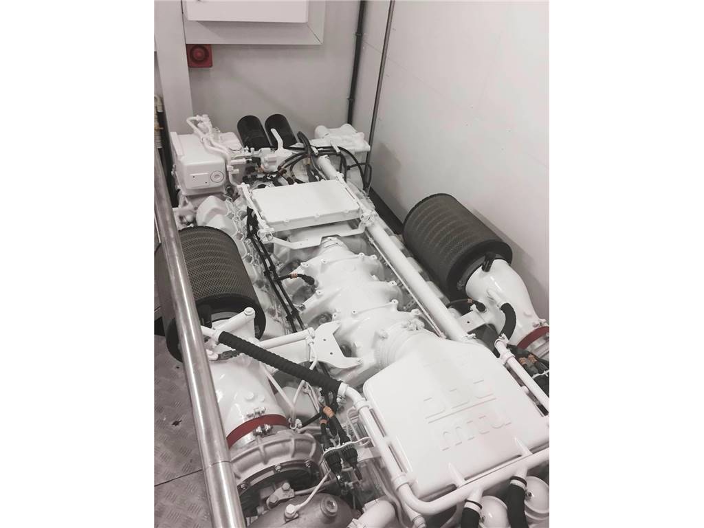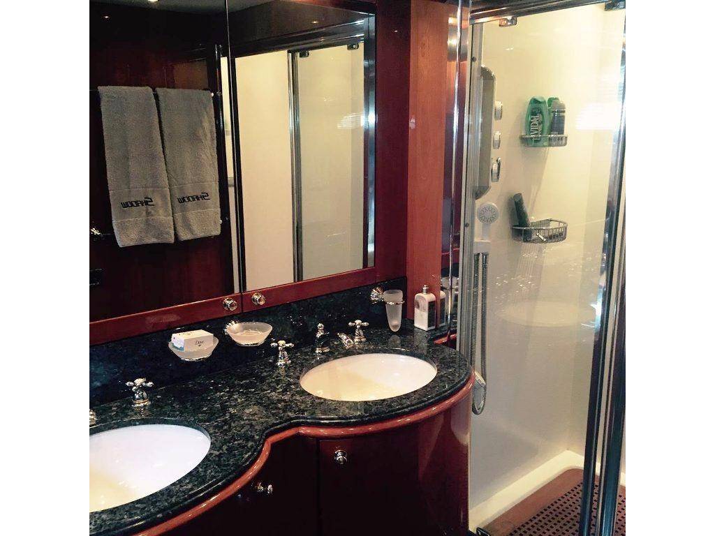Notas internasNumber of cabins: 4 Master Suite: ? On Deck-forward-full beam ? King berth w/storage below ? Settee ? 42" Plasma TV ? Hi-fi surround sound system w/CD/DVD/radio ? Walk-in closet ? Safe ? Ample drawer storage and cabinets ? Lower level dressing room ? En suite head w/shower-lower level VIP Stateroom: ? Lower deck-amidship-full beam ? Centerline king berth w/storage below ? Settee ? 42" Plasma TV ? Hi-fi surround sound system w/CD/DVD/Radio ? Walk-in closet ? Ample drawer storage and cabinets ? En suite head w/shower Guest Staterooms (P & S): ? Twin berths w/storage below ? Night stand between berths ? 15" LCD TV ? DVD/CD player ? Hanging locker ? En suite head w/shower ? Port cabin features additional pullman berth Crew Quarters-Aft: ? Accommodations for up to 4 w/port & starboard twin berth cabins each w/head and shower ? Crew lounge area 15" LCD TV, CD & DVD Notas de la instrumentaciónPilothouse Helm? Furuno NavNet radar/chartplotter GPS with color displays ? Autopilot ? Dual station VHF ? Multiview speed & depth displays ? Electronic compass ? MTU blue line engine displays ? Rudder angle indicator ? Portable remote control for engines & thrusters ? Hydraulic power steering ? Emergency steering Deck Equipment ? 2 x Muir 4500 hydraulic anchor windlasses ? 2 x Stokes HHR 113 kg galvanized anchors w/85m & 95m chain ? Automatic anchor & chain salt water wash down ? 2 x Hawses w/roller, chain stoppers and devil's claw ? 2 x Muir hydraulic capstans (aft) ? Fore deck sun pad and seating ? Hydraulic passerelle ? Hydraulic swim platform-Major hydraulic overhaul, 2015 ? Hot & cold hand held swim platform shower ? Swim ladder ? Stern garage w/power operated door for tender storage ? Stern dive locker with power operated door ? Stainless steel caprails added throughout ? Misting system on fly bridge ? Wash down system, fore, aft and fly bridge decks ? Third dome added for extra AV equipment including Playstation3/Wii games throughout ? Nautica International 16 Jet RIB-160 hp ? Seadoo GTI jet ski ? Life rafts ? Teak cockpit, side decks, stairs, wheelhouse, fly bridge & swim platform Mechanical ? Twin MTU V16's @2000 hp each ? Triplex fuel filters to main engines ? Fuel filters to generators ? Manual fuel shut-off valves ? Engine stop warning ? Engine room sound insulation ? Fuel tank level indicator ? Hydraulic Trim Tabs ? Hydraulic power steering ? Emergency steering ? Wesmar hydraulic bow and stern thrusters @50 hp each ? Wesmar stabilizers ? Oil change system ? Fire alarm system ? FM200 & CO2 Fire extinguishing systems ? 14 x Hand held fire extinguishing-(up to date) ? Air Conditioning ? Automatic bilge pumps ? Smoke alarm system with central alarm and sensors through out the yacht ? Antifouling on bottom - regularly maintained ? All systems inspected and up to date Electrical ? US Spec electrical ? 2 x 40kW 60 hz Kohler gensets ? Atlas Shore Power conversion system ? 80 AMP battery charger ? 2 x 24V, 95 AMP battery chargers ? Emergency battery cross connection system ? 24V Start-up batteries ? Side deck lighting Notas de armamentoUpgrades? Antifouling on bottom - regularly maintained ? Cruisair chilled water air conditioning upgraded throughout to handle dark hull color. Extra A/C chiller added to engine room ? Stainless steel caprails added throughout ? Contemporary style exterior cushions ? All soft goods replaced including new leather handrails inside ? Misting system added to flybridge ? Fresh water washdown system added to flybridge Salon ? Cherry interior ? Cream carpeting and cream settees ? Wet bar ? Hi/lo 50" TV w/Hi-fi surround sound, CD/DVD/radio ? Formal dining area forward w/seating for 8 ? Day Head Galley ? On deck galley ? Ice maker ? 2 x Refrigerators ? 3 x Freezers ? Gaggenau Microwave ? Gaggenau Electric cooktop and oven ? Exhaust fan ? Garbage disposal ? 2 x Miele dishwasher ? Miele washer & dryer ? Platinum table service for 12 Fly Bridge ? Acessed via teak-laid stairway from aft deck ? Fly Bridge misting system in radar arch ? Large sunpad/lounge (P) ? C-settee w/table (S) ? Wet bar w/electric ceramic grill, refrigerator and ice maker ? Teak decking ? Fresh water deck wash outlet ? Helm station w/dual helm chairs (S) and bench seating (P) ? Radio/CD player with remote keypad at flybridge helm & 2 speakers in wheelhouse |