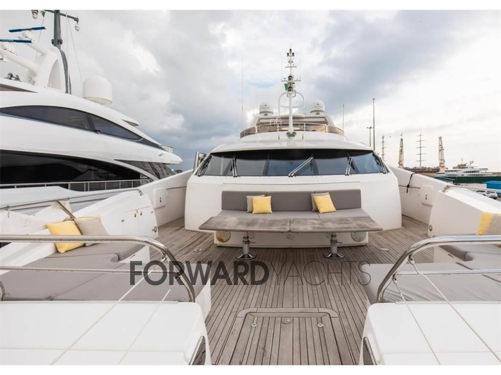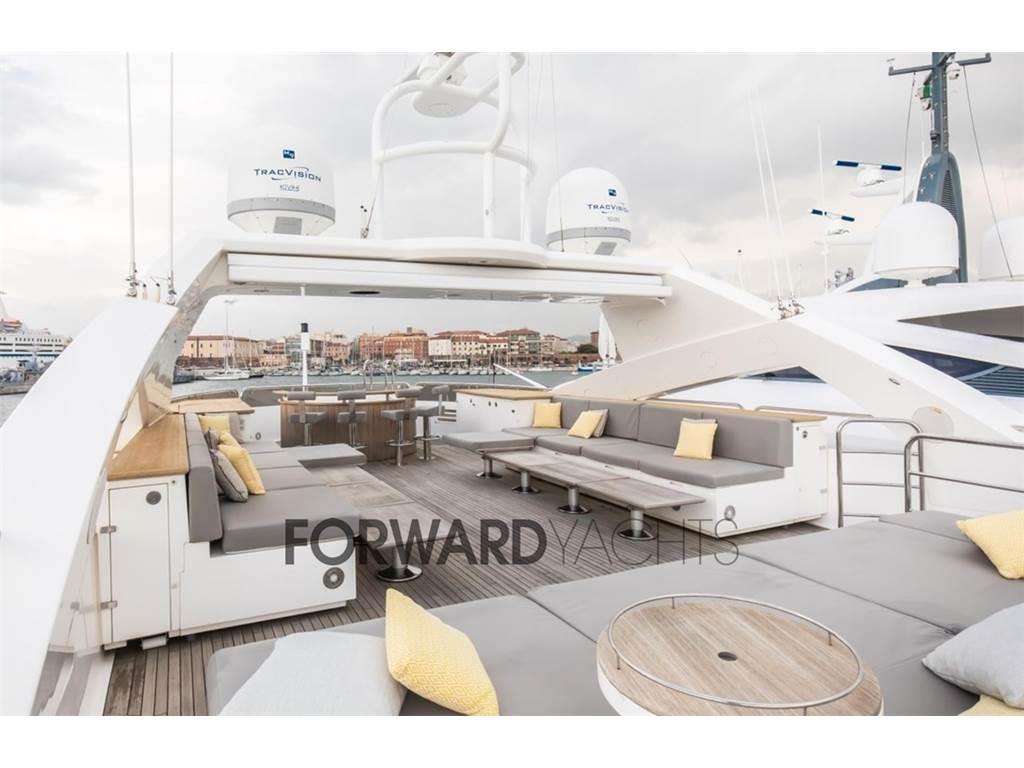 Notas internasFino a 12 Ospiti in 5 Cabine ospiti con bagno en-suite: Cabina armatoriale a tutto baglio sul ponte principale, con letto matrimoniale centrale, cabina armadio, armadi, bagno en-suite con doppi lavabi, box doccia separato e WC separato 2 x Cabine VIP sul ponte inferiore, ciascuna con letto matrimoniale centrale, armadi e bagno en-suite 2 x Cabine doppie sul ponte inferiore, ciascuna con letti singoli convertibili in matrimoniale tramite meccanismo scorrevole, armadi, letto Pullman aggiuntivo e bagno en-suite Area equipaggio Fino a 9 membri di equipaggio in 5 cabine con servizi privati: Cabina del Comandante sul ponte di comando con bagno en-suite 4 x Cabine con letti a castello a prua sul ponte inferiore, ciascuna con servizi privati Zona cucina equipaggio Allestimenti Ponte: Ponte superiore con sky lounge, tavolo da gioco, bar, day head (servizi igienici di cortesia), office/cambusa di servizio e plancia di comando Ponte principale con salone principale, zona pranzo formale, day head e cucina completamente attrezzata Balcone apribile nel salone del ponte principale Notas de la instrumentaciónStrumentazione:Comandi elettronici motori MTU Display elettronici motori MTU Sistema di allarme uomo a mare (BNWAS) FURUNO BR-510 Ecoscandaglio FURUNO FE-700 Pilota automatico SIMRAD AP50 NAVTEX FURUNO NX-700 Telecamera termica FLIR M-625L Faro di ricerca SANSHIN HR10/12 con unità di controllo Log di velocità NAVYKNOT Radar FURUNO RCU-014 GPS FURUNO GP-150 Sistema AIS FURUNO FA-150 3 x Computer di bordo con monitor dedicati Stampante ECDIS (Electronic Chart Display and Information System) TRANZAS NAVISAILOR-4000 Radio VHF SIMRAD RS87 Radio VHF SAILOR 6222 2 x Terminali SAT-C SAILOR 6006 e SAILOR 6101 Ricetrasmettitore MF/HF SAILOR 6301 SART (Search and Rescue Transponder) MCMURDO S4 2 x VHF portatili SIMRAD Notas de armamentoAccessori Principali:Elica di prua TRAC Elica di poppa TRAC Stabilizzatori TRAC a zero velocità e in navigazione Condizionamento aria in tutti gli ambienti Dissalatore IDROMAR da 375 l/h Scaldabagni HOWDEN 2 x 200 litri Doccia a poppa con acqua calda/fredda Jacuzzi e bar sul skydeck Tavolo da pranzo per 10/12 persone sul ponte superiore 4 tende da sole elettriche retraibili in varie posizioni Passerella telescopica idraulica in acciaio inox lucido BESENZONI 2 argani d’ormeggio MUIR 2 verricelli d’ancora MUIR |