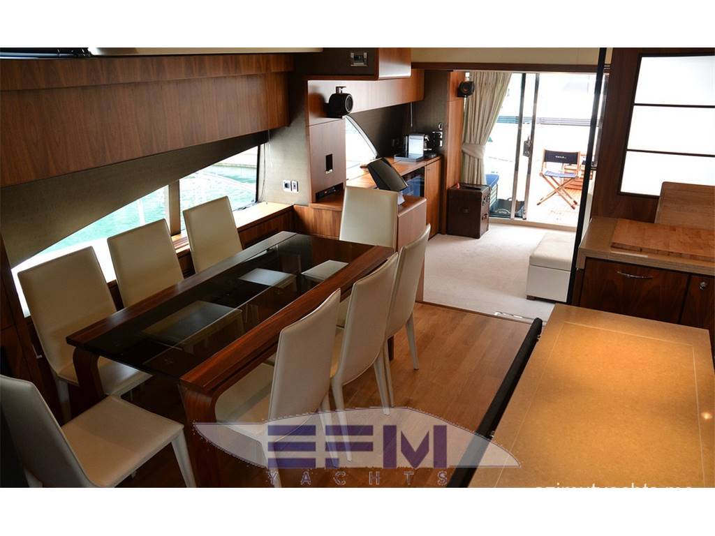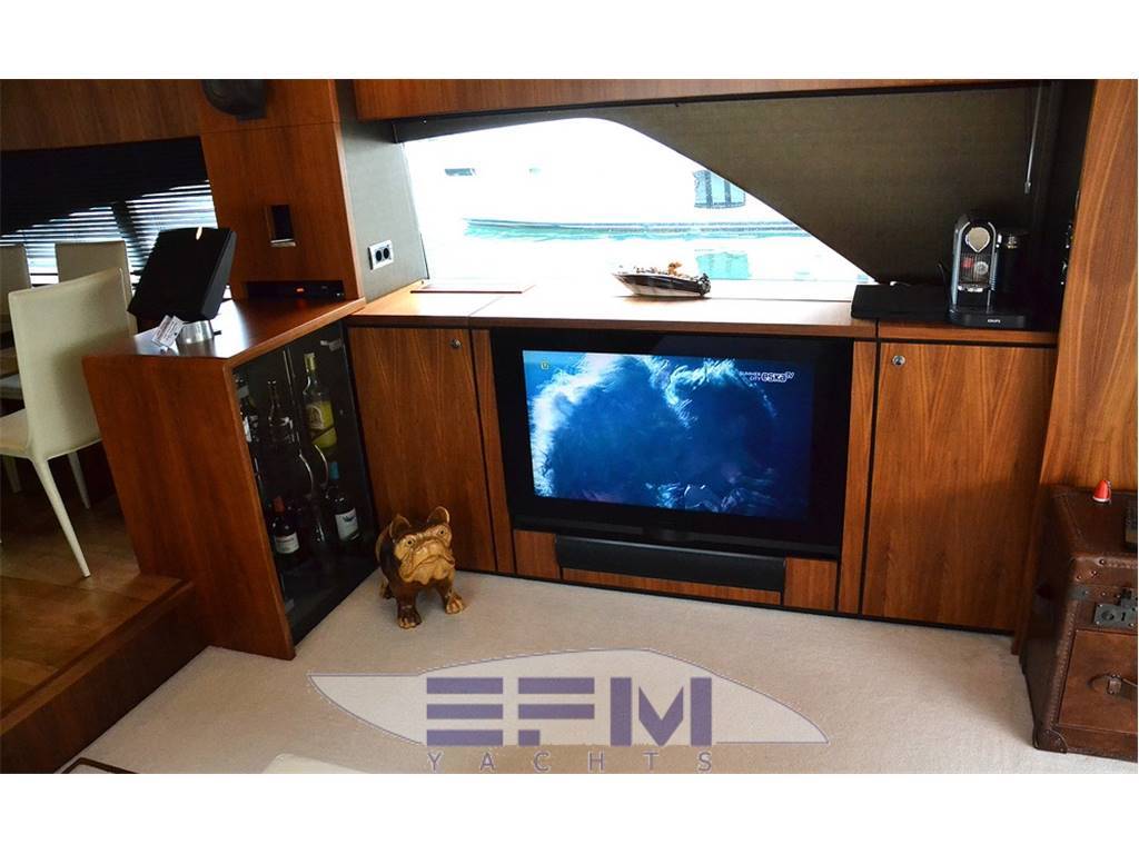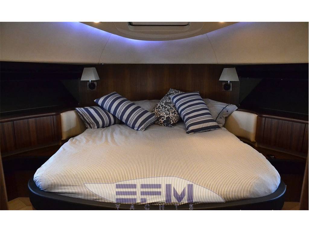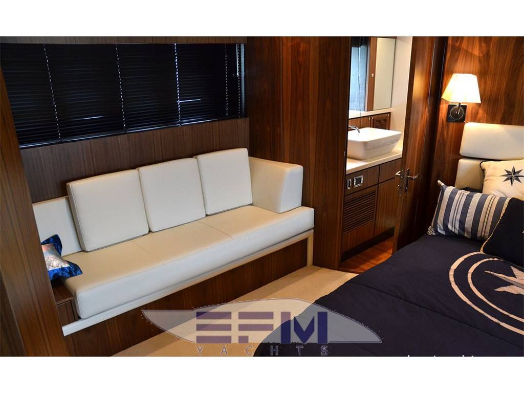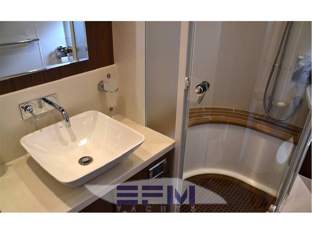 Notas internasCrew cabins 1 Guest Berths 8 Crew Berths 2 Guest Head 3 Crew Head 1 Notas de la instrumentación• Full Electronic instruments: GPS / Radar / Chartplotter connected to autopilot• Repeater of equipment, controls and engine electronics on flybridge • Satellite TV (KVH M7) with decoders in salon and master cabin • Waxwork TV antenna on roll bar • Home entertainment Bang & Olufsen • LEd TV in salon 40” TV Cinema System • LCD TV in salon and all cabins (15” LCD ? DVD / CD / radio in crew cabin, bow VIP cabin, cabins stardoard and port sides) • 37” LCD ?? Notas de armamentoAdditional options• Seakeeper Zero-Speed • Bow thruster 20 mhp • 2 x generator Onan 22.5Kw • Tropic air conditioner (reversible) • Underwater lights • Telescopic electrohydraulic gangway with remote control, • Crane on flybridge • Tender Williams 325 Jet Rib on swimming platform • Jetski Sea-Doo GTI 4-TEC on fly • Interior with matt nut • Tent in aft cockpit • Sofa upholstered with leather (Venezia White) • Cushions on fly (colour - "wet sand") • Bimini tent on fly, electrically operated • Third control panel (remote), for engines • Monitor Garmin in crew cabin • 2 ? video cameras (in engine room, cockpit) • Wine cooler in galley • L-shaped sofa in salon • Ewresh water maker • Second refrigerator on fly • Cooler box in master cabin |