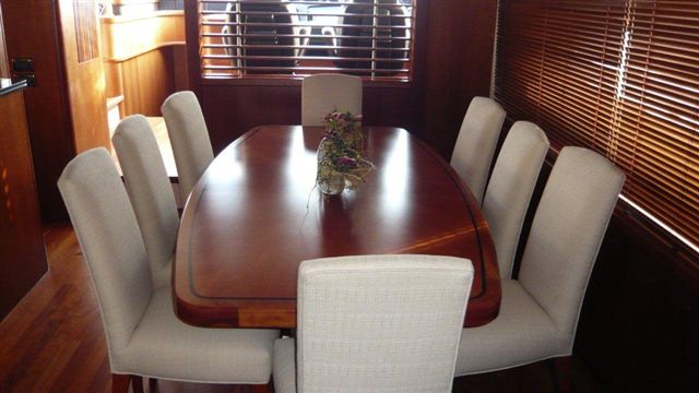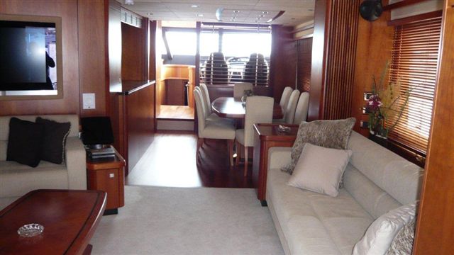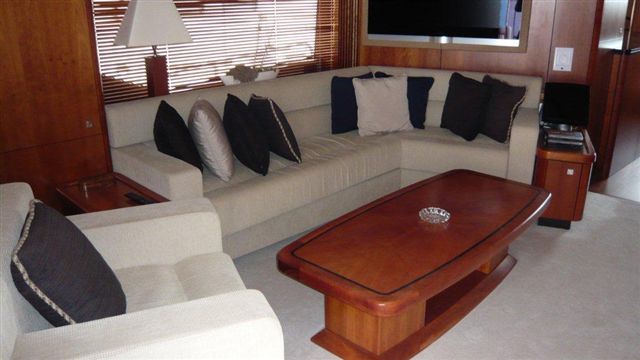 Notas internasN º 1 maestro de popa con bagno.n ° 1 camarote VIP adelante doble cabina de invitados con bagno.n ° 2 cabañas con salone.cucina bagno.ampio completa en una habitación separada equipada con microondas, lavavajillas, cottura.interni piso en cedro natural, tapicerÃa beige, alfombras de color beige en la sala de estar, suelo de mármol negro en la cocina.