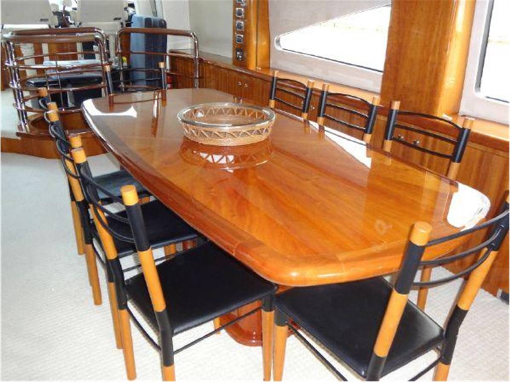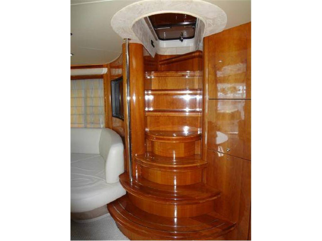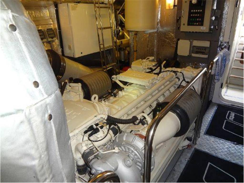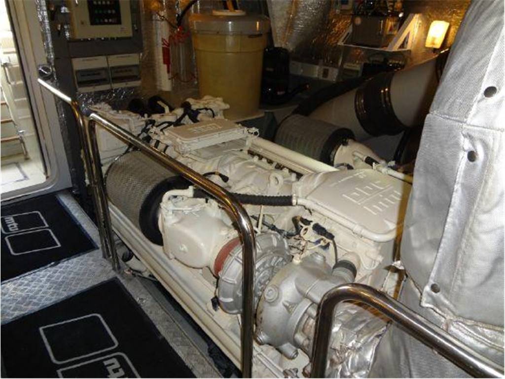 Notas internas4 stateroom, 5 head layout plus crew. Master Cabin Stateroom: ? Double berth w/under berth storage and drawers ? Night stands and lamps ? Love seat ? Hanging lockers ? Vanity table ? Mini bar fridge and glass storage ? TV/VCR/DVD/CD/AM-FM Radio & Surround sound system ? Digital combination safe ? Full length mirror ? En Suite head w/bidet & shower ? Twin sinks ? Opening portlights VIP CABIN: ? Double berth w/under berth storage ? Bedside shelves ? Dressing table w/stool ? Hanging locker ? Storage cabinet ? 19" LCD TV, DVD/CD w/2 speakers ? Digital combination safe ? En Suite head w/shower ? Single sink ? Cabinets w/granite counter tops Port Guest Cabin: ? Twin berths w/storage and drawers below ? Night stand w/lamp ? Hanging locker w/mirror ? Dressing table w/stool ? TV/DVD/CD w/speakers ? En Suite head w/shower Starboard Guest Cabin: ? Twin berths w/under berth storage and drawers ? Night stand w/lamp ? Hanging locker w/mirror ? TV/DVD/CD w/speakers ? En Suite head w/shower Crew Quarters: ? Entry from Transom ? Watertight engine room door ? Twin berths w/fom mattresses, sheets & pillowcases ? Hanging locker ? CD player w/speakers ? Washer/Dryer ? Single berth w/foam matteras, sheets & pillowcases ? Head w/shower Notas de la instrumentaciónPilothouse? Helm Chairs ? Settee seating area ? Table w/chart storage ? 24v Overhead halogen lighting w/dimmers ? Engine controls ? Hydraulic powr steering ? 2 x Northstar 962XD GPS plotter (PH/FB) ? SAT phone ? NEW, GPS & Radar including new radar antenna ? Simrad RA 54 radar (FB repeater) ? Remote control ACR searchlight ? 3 x Sailor VHF radios ? Simrad AP20 autopilot w/gyro compass (FB repeater) ? Simrad IS15 depth sounder and speed display (PH & FB) ? CCTV monitors w/pan/tilt stern and camera (FB & engine room) ? On Board high tech security system w/alarm/strobe, sensors and indicators ? KVH Trac Vision ? KVH Trac Phone system ? Panasonic telephone system thru out yacht interfaced w/Tracphone and land line ? Bow & stern thruster controls ? Trim tab controls ? Air Horn ? Engine analog gauges ? Fuel gauge ? Fresh water gauge ? Systems monitoring panel ? Skylight w/electric blind to lower deck foyer Flybridge Helm ? Hydraulic power steering ? Engine throttle & gear controls ? Autopilot ? Radar/Chartplotter w/GPS display unit, NEW ? Depth & speed display ? VHF Radio ? Compass ? Engine analog gauges ? Fuel gauge ? Rudder angle indicator ? Spotlight remote control ? Bow & stern thruster control ? Trim tab controls ? Air horn control ? Pilot & co-pilot seats ? Instrument cover ? Remote keypad for FB ? CD/Radio Engine Room ? 4 x Fuel filters w/water alarms ? Fuel tank w/electric sender unit ? Manual bilge pump w/changeover valve for pumping fore and aft compartments ? 24v Automatic bilge pumps-Engine room-2 flood pumps (977 gph & 396 gph) ? Bilge alarm fore and aft ? 24v Scavenger bilge pump ? Sound insulation ? Freshwater engine to up hose & spigot ? 24v Lead light ? Automatic FM200 fire extinguisher system w/engine/gen & fan shut down ? Wesmar stabilizers ? 24v Hydraulic pump for trim tabs, passerelle and lifting platform ? Hydraulic bow & stern thrusters ? Fuel shut-off valves, operable in and out of engine room ? 24v Tecma toilets w/macerator pump-switch for overboard or holding tank discharge ? Fresh water tank w/sending unit ? AC & DC Fresh water pressure system ? 2 x Hot water tanks w/2kW immersion heaters ? Watermaker-630 gpd ? Chilled water reverse cycle A/C, NEW: Chillers, valves, tubing & strainers Electrical System ? 2 x Dockside shorepower Connections: Glendinning 100 amp w/100 ft. lead w/remote plus 50 amp socket, Shore power cables are NEW ? 2 x TV & telephone dockside connections ? Twin 30kW Kohler generators w/sound shields and water silencers, remote start-up, 12v starting batteries, NEW strainers Notas de armamentoLower Deck Foyer:? Skylight ? Bilge access hatch ? 24v Halogen lighting ? Under stairway storage cabinet ? Day head w/granite flooring and cabinet top, 24v head and sink Aft Deck, Swim platform ? Hydraulic swim platform w/removable dinghy chocks ? Teak decking-swim platform, steps and aft deck ? Passerelle ? Jet Ski and room for an additional jet ski if desired ? Bench seating w/removable cushions ? Teak table w/folding leaves and GRP pedestal ? Low and high level lighting ? Storage lockers ? Engine room access hatch ? Storage locker w/Avonite inset top Salon: ? Sliding curved glass doors opening to aft deck ? NEW, Marble sole ? Newly reupholstered settees ? NEW, Curtains ? Arm Chair ? Coffee Table ? A/C ? 24v Halogen lighting ? Wet bar w/ice maker & refrigerator & 2 stools ? Entertainment center ? SAT LED TV Dining Area: ? Stairway to Flybridge ? Stairway to lower deck ? Dining table w/seating for 8 ? Sideboard Galley ? Full-size refrigerator/freezer w/ice maker ? 4-Ring ceramic cooktop ? Electric Oven, NEW ? Microwave ? Exhaust fan ? Dishwasher ? Cabinets w/granite counter tops ? Garbage disposal Deck Equipment ? NEW, exterior LED lighting ? Teak Decks ? 24v Anchor winch and capstan ? Anchor & chain ? Automatic chain wash ? SS anchor plate ? SS Sternhead roller ? 8 x SS Cleats ? 2 x Retractable cleats-Swim platform ? Fresh water wash down outlets-fore & aft ? Fender and line lockers (P & S) ? Concealed fuel fillers (P & S) ? Retractable gangway ? Side gate access (P & S) ? 3 x 24v Windshield washer/wipers ? Navigation lights ? Underwater lights ? Remote controlled spotlight on bow ? Side deck low level courtesy lights ? Door from helm to deck-starboard ? Fire hydrant outlets w/hose-fore and aft Flybridge ? Hatch access from main salon stairway ? Teak Deck ? Jacuzzi ? Removable radar arch ? 4 x Custom helm seats ? Settee w/storage below ? Full wet bar w/refrigerator, electric BBQ and NEW icemaker ? Radar antenna, NEW ? Loudhailer ? Twin trumpet air horns ? Deflecting windscreen ? Low-level lighting ? SS safety rails ? 1500 lb. Marquipt davit ? Aft Deck access stairs |