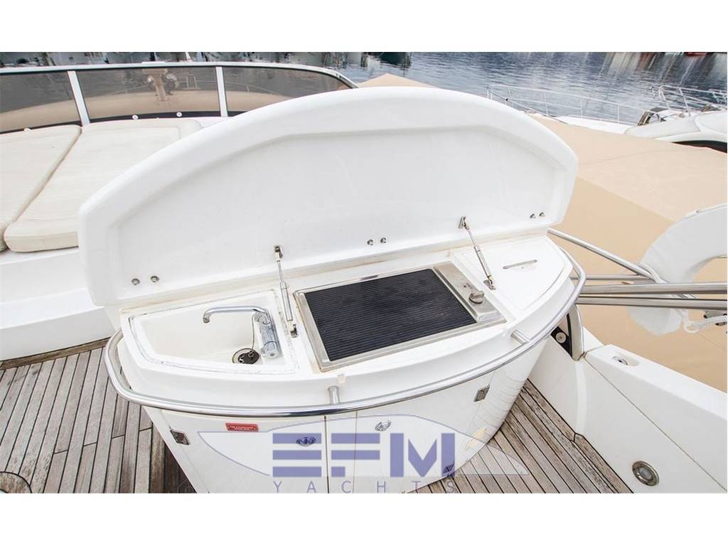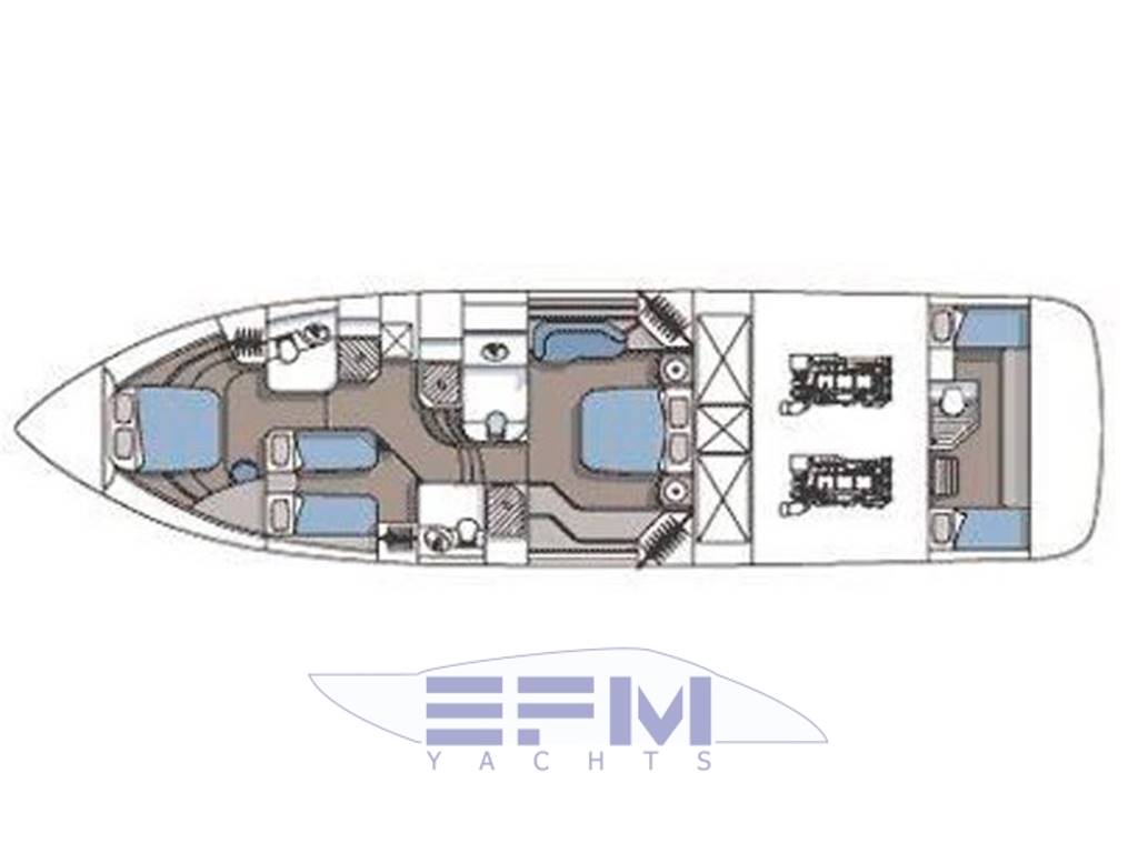 Notas internas2 HEADS + 1 CREW HEAD 1 MASTER FULL BEAN ENSUITE 1 VIP ENSUITE 1 GUEST DOUBLE BUNKS BEDS 1 CREW CABIN + 1 HEAD Interior Arrangements: • Full beam master cabin • Forward VIP double cabin • Twin guest cabin • Crew cabin • carpet throughout Interior audio/video system: • Samsung TV in saloon • Flat screen LCD TV in forward cabin • TV in master cabin plus DVD player Notas de la instrumentación• Raymarine Hybrid Touch chartplotters - 1 lower helm and 1 upper helm• Raymarine autopilot • Raymarine speed/depth log • Raymarine radar • Electric echo sounder • Electric searchlight • Raymarine autopilot ST600 on flybridge Notas de armamento• Anchor with 90m of chain• Flybridge wetbar with sink, refrigerator and icemaker • Bimini top on flybridge • Teak deck in cockpit, on side decks, aft bathing platform a • Besenzoni hydraulic gangway • Hydraulic lifting bathing platform • Anchor and stern winches • Rib tender jet 280 • Grill on flybridge • Aft cockpit seat cover • Foredeck sunbathing cushions • liferafts • Gyroscopic stabilizer • teak cockpit 4 chairs • Teak cockpit table • Kohler Generator • Sky TV receiver + WIFI router • Watermaker • Air conditioning throughout • Galley fully equipped • Tender + engine |