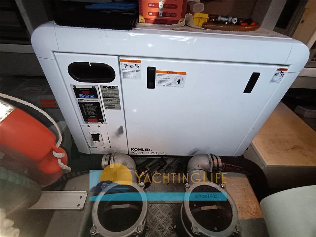 Notas de armamentoAntenna Satellitare TV, Aria condizionata, BBQ/ Grill, Bimini, Boiler, Clima reversibile, Copripozzetto, Cucina, Cuscineria completa, Cuscineria fly, Decoder satellite, Dissalatore, DVD, Fornello, Forno, Frigorifero esterno, Frigorifero interno, Home Theater (Bose), ICE Maker, Impianto acque nere, Impianto TV, Lavastoviglie, Lavatrice, Microonde, Piastra in vetroceramica, Prese interne 12v, Prese interne 220v, Riscaldamento, Stereo, 2 Telecamera (Sala motori e poppa), Teli copri finestra, TV (3), WC marino elettrico