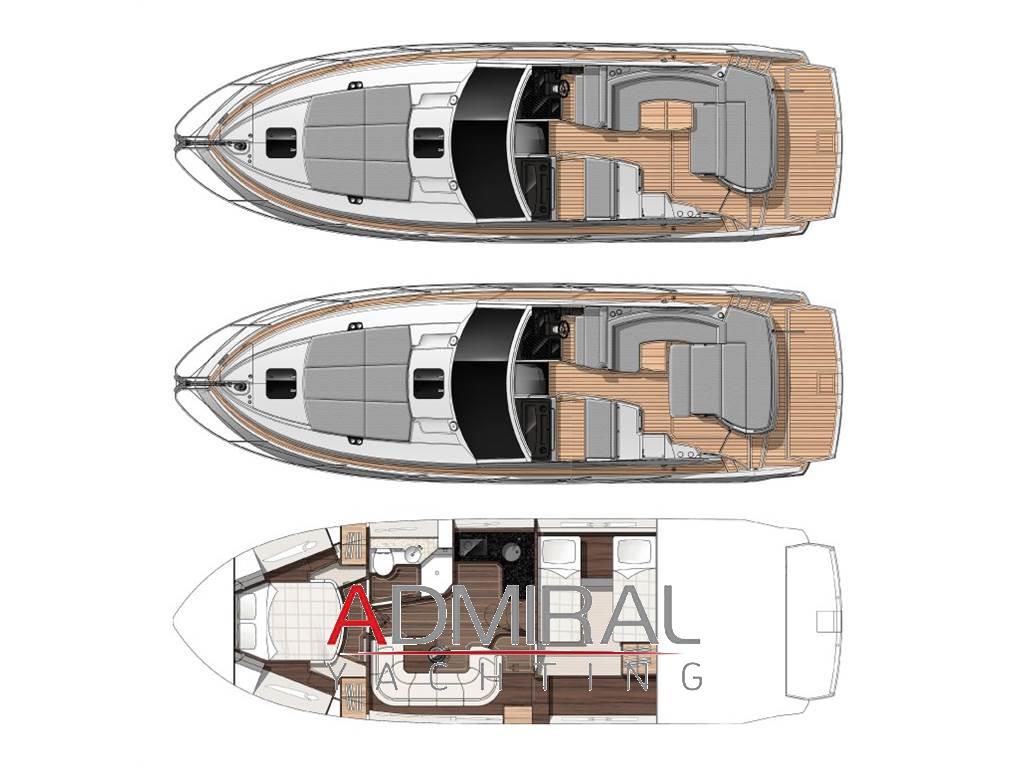 Notas de armamentoAllarme motore, Allarme sentina, Alternatore, Ancora, Apertura Vano Motore Elettrica, Autoclave, Batterie, Caricabatterie, Doccia esterna, Elica di prua - bow thruster, Flap elettrici, Hard top, Impianto antincendio, Lavandino nel Pozzetto, Luci di cortesia, Luci subacquee, Piattaforma, Pompa di sentina automatica, Pompa di sentina elettrica, Pompa di sentina manuale, Porta ingresso, Pozzetto Teak, Presa 220V banchina, Salpa Ancore Elettrico, Scaletta da bagno, Sedile Copilota, Tavolo pozzetto, Tavolo Salone Abbattibile, Tientibene con cancelletti, Tromba, Altoparlanti, Aria condizionata, Boiler, Clima reversibile, Cucina, Cuscineria completa, Cuscineria di poppa, Cuscineria di prua, Cuscineria Pozzetto, Digitale Terrestre, Frigorifero interno, ICE Maker, Impianto acque nere, Impianto TV, Microonde, Piastra in vetroceramica, Prese interne 12v, Prese interne 220v, Radio AM/FM, Riscaldamento, Serbatoio Acque Nere, Stereo, Teli copri finestra, Tendalino, TV, WC marino elettrico