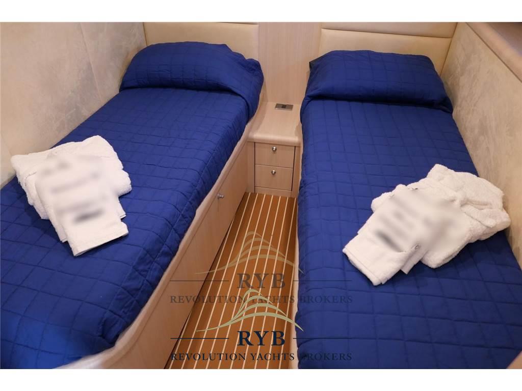 Notas internasNotas de la instrumentaciónBussola, Comando motori elettronico, Contametri catena, Contamiglia, Ecoscandaglio, GPS, Joystick, Pilota automatico, Plotter, Radar, Radio VHF.Notas de armamentoAllestimento tecnico e di coperta:Allarme motore, Allarme sentina, Ancora, Elica di poppa - stern thruster, Elica di prua - bow thruster, Flap idraulici, Hard top, Impianto antincendio, Lavandino nel Pozzetto, Luci di cortesia, Passerella (besenzoni/idraulica), Pompa di sentina elettrica, Pozzetto Teak, Salpa Ancore Elettrico, Scaletta da bagno, Tavolo pozzetto, Winch tonneggio di poppa. Dotazioni domestiche di bordo: Aria condizionata, Impianto acque nere, Prese interne 12v, Prese interne 220v, Serbatoio Acque Nere, WC marino elettrico. Intrattenimento: Antenna Satellitare TV, Impianto TV, 3 TV (in tutte le cabine). Cucina ed elettrodomestici: Cucina, Frigorifero esterno, Frigorifero interno, Lavastoviglie, Winecooler. Tappezzerie: Cuscineria completa, Cuscineria Pozzetto. |