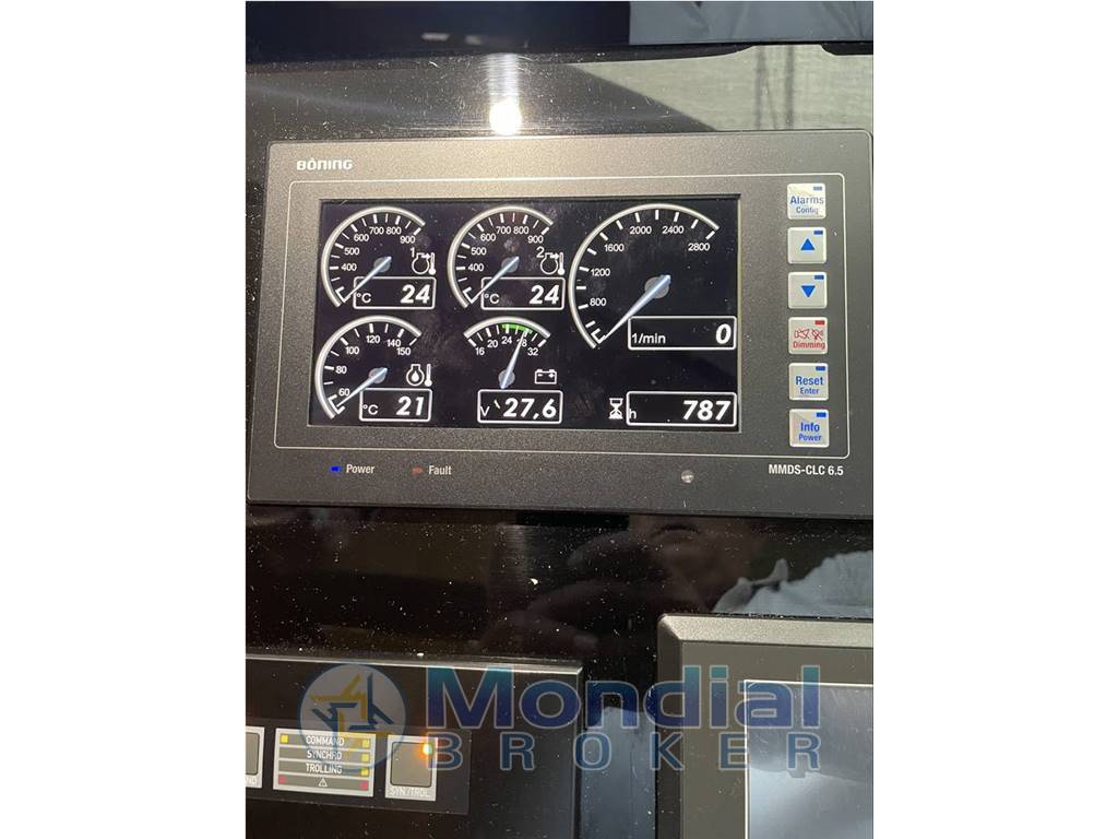 Notas internasCABINA ARMATORIALE CENTRO NAVE CON CABINA ARMADIO BAGNO EN SUITE CABINA VIP A PRUA CON BAGNO EN SUITE CABINA OSPITI CON LETTI GEMELLI E BAGNO CON DOPPIO INGRESSO CABINA EQUIPAGGIO CON DUE LETTI CON BAGNO SEPARATO ED INGRESSO DALLO SPECCHIO DI POPPA Notas de la instrumentaciónRAYMARINE COMPOSTA DA:2 GPS MULTIFUNZIONE E 165/15.4" AUTOPILOTA EV1 RADAR/SCANNER 48 MG. 4 KW VHF 260 CON DSC BUSSOLA CON "CORRECTION CARD" Notas de armamentoELICA DI PRUAELICA DI POPPA PLANCIA DI POPPA IMMERGIBILE CON PISTONI IDRAULICI E SELLE PER POSIZIONMENTO TENDER (PORTATA 450 KG.) STABILIZZATORI SLEIPNER SPS 55 CON UNITA' VECTOR FIN 0.8 METRI GENERATORE ONAN 19 KW CON 48 ORE DI FUNZIONAMENTO CONTACATENA YACHT CONTROLLER PASSERELLA IDRAULICA A SCOMPARSA DA 4 METRI LAVASCIUGA MIELE WT2796 HARD TOP CON APERTURA ELETTRICA WINCHES DI TONNEGGIO ELETTRICI A POPPA LEWMAR C3 LUCI POPPA ORMEGGIO SISTEMA DI ALLARME A 6 ZONE FUOCO ED ALLAGAMENTO SENTINE CANTINETTA VINI REFRIGERATA U-LINE CUSCINERIA A PRUA CON SCHIENALI RIBALTABILI 90 METRI DI CATENA GALVANIZZATA VERRICELLO ANCORA LEWMAR V5GD 24V ANCORA DELTA DA 40 KG. GARAGE TENDER CON APERTURA ELETTRO/IDRAULICA TENDER ROLLER SYSTEM SISTEMA DI LAVAGGIO COPERTA COMPLETO DI KIT DI TUBAZIONI CASSAFORTE GONFIATORE PER TENDER 12V 2 PRESE ADDIZIONALI 230V IN COCKPIT PIANO CUCINA AD INDUZIONE PANNELLI LATERALI CUCINA IN ALLUMINIO IMPIANTO ARIA CONDIZIONATA 94000 BTU FARO DI COPERTA TV SAMSUNG A SCOMPARSA DA 55" IMPIANTO HARMAN KARDON BLU RAY-DVD-CD-FM RADIO CON 2 ALTOPARLANTI E SUBWOOFER FUSION MARINE CON ALTOPARLANTI ESTERNI TV SAMSUNG 32" IN CABINA ARMATORE CON HARMAN KARDON BLU RAY CD-DVD-FM TV SAMSUNG 32" IN CABINA VIP CON HARMAN KARDON BLU RAY CD-DVD-FM TV SAMSUNG 32" IN CABINA OSPITI CON HARMAN KARDON BLU RAY CD-DVD-FM ICE MAKER VICTOR FRIGO CLASSIC GRILL ESTERNO IN VETROCERAMICA LUCI A LED (8 PER LATO) SU CAMMINAMENTI LATERALI PURIFICATORE D'ACQUA PER ICE MAKER PAVIMENTO POZZETTO E TAVOLO IN TEAK CHIUSURA CAMPER POZZETTO CON FINESTRA COPERTURE PER STRUMENTI COPERTURA PER HARD TOP, PARABREZZA E VETRI |