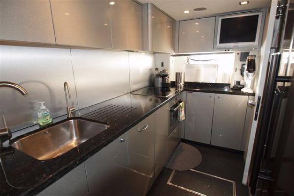 Notas de armamento2 generadores Kohler 23 Kw cada uno duro-esposas de ettroniche eléctrico superior alojamiento de garaje puerta de acceso del lado tierno al puente sumergido de popa plataforma teca de playa hundimiento passerella idraulica besenzoni con luces remotos luces azules halógeno cortesÃa interiores hielo accesorios aire acondicionado calor/frÃo Cabañas en cabañas independientes equipo modelo idromar tropical desalinizadora 180 L inversor/H satelital y decodificador en el salón y en todas las cabinas con seguro popa de módulos independientes separados doble cabrestante con cerradura digital Cojines de Sunpad completo, bañera Teca total seguridad equipos asà como completa cierre tapa sábanas toallas noche para sesiones externas, vestidos de Stern y arco y arco hélice hélice Cabina tabla 12 mg cubierta molinete con ancla y cadena aleta aspersores Lavavajillas lavadora nevera fuera Hola-Fi rodean red eléctrica sistema aguas negras tanque externo televisor en todas las cabinas con dvd y sky tv lcd en dinette
