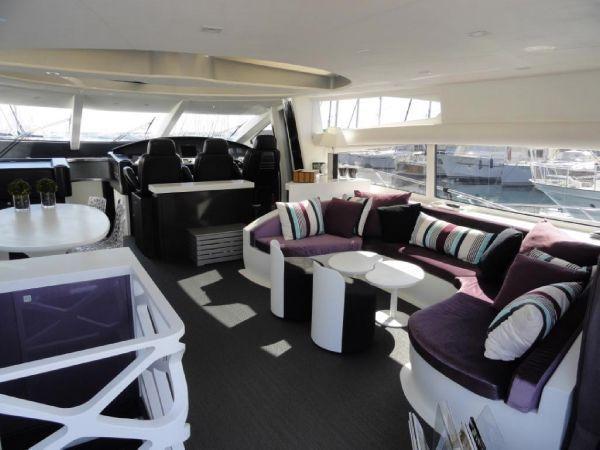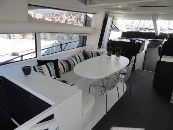 Notas internas-Gran comedor con comedor consola de área piloto con tres lugares-cocina y equipo de área en área separada-cabina de popa al rayo completo con cabina vestidor armario y baño vip con un lazo doble con cabina de invitados en-suite con camas planas con camarote baño con literas con muebles de baño en blanco lacado de madera