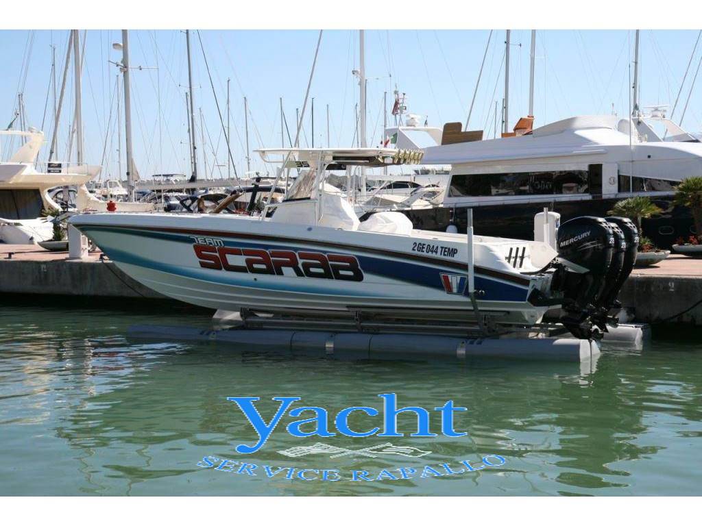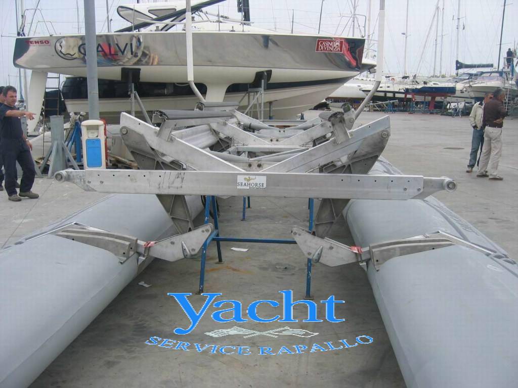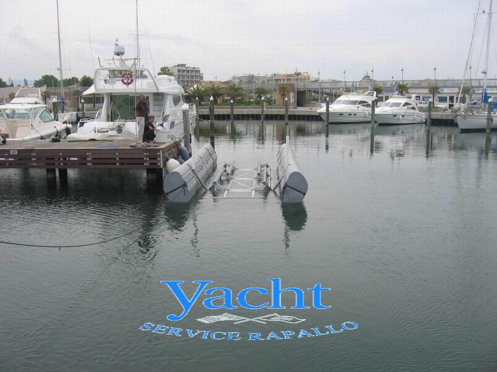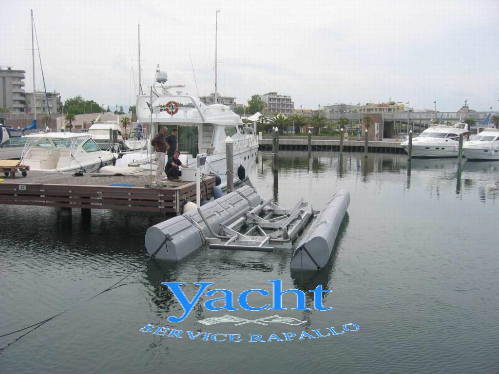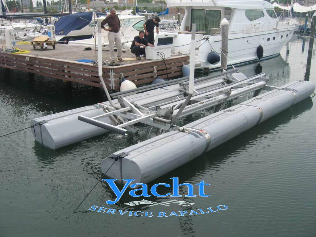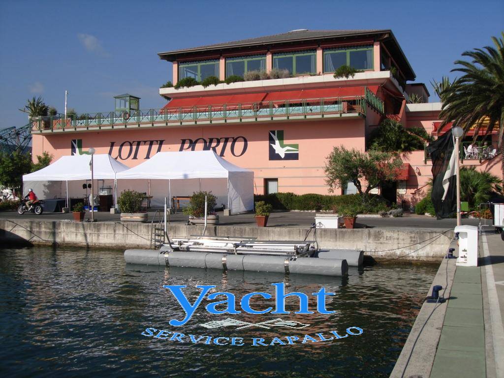 Notas internasLarghezza (lift alzato) mt 3,38 Larghezza (lift abbassato) mt. 4,27* Larghezza mass. scafo mt. 3,23 Pescaggio consentito per carene a V mt. 0,86 Immersione con lift immersione barca + mt. 0,30 Dislocamento 1.315 Kg Capacità sollevamento 5.897 Kg Velocità di apertura 40’’ Notas de la instrumentaciónDa oltre dieci anni l’americana Sunstream produce una gamma di sollevatori che permettono di tenere la barca ormeggiata all’asciutto. Evitando il contatto con l'acqua, la carena, le trasmissioni, le eliche, i flap, i timoni e ogni altro elemento dello scafo restano perfettamente puliti e si conservano più a lungo.Notas de armamentoL’opera viva non richiede alcuna protezione con antivegetativa e il mezzo risulta quindi più veloce e più parco nei consumi. L’alaggio per l’eliminazione del fouling non è più necessario, i fenomeni osmotici vengono evitati e il valore del bene si mantiene più elevato nel tempo.Tutti gli organi meccanici richiedono una minore manutenzione e il loro rendimento in navigazione è certamente superiore. A tutto ciò si aggiunge il piacere di mostrare una barca sempre perfettamente pulita, anche sul fondo e lungo la parte inferiore delle murate. |