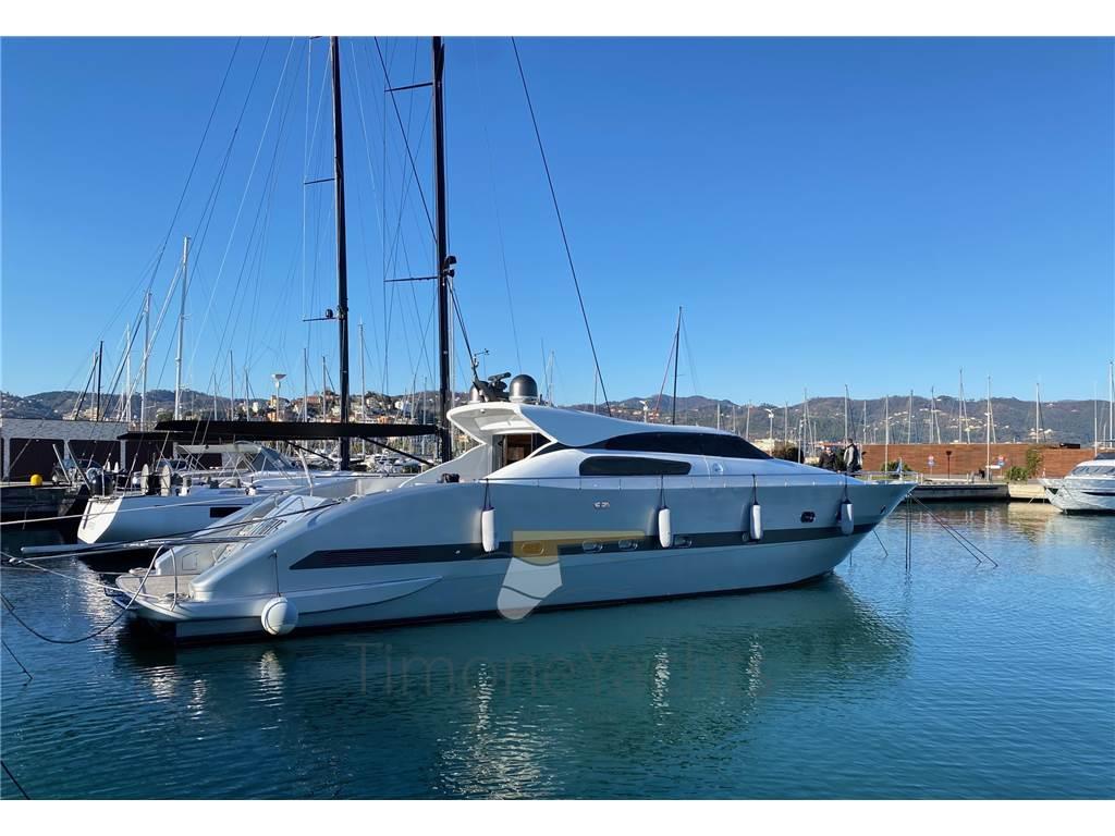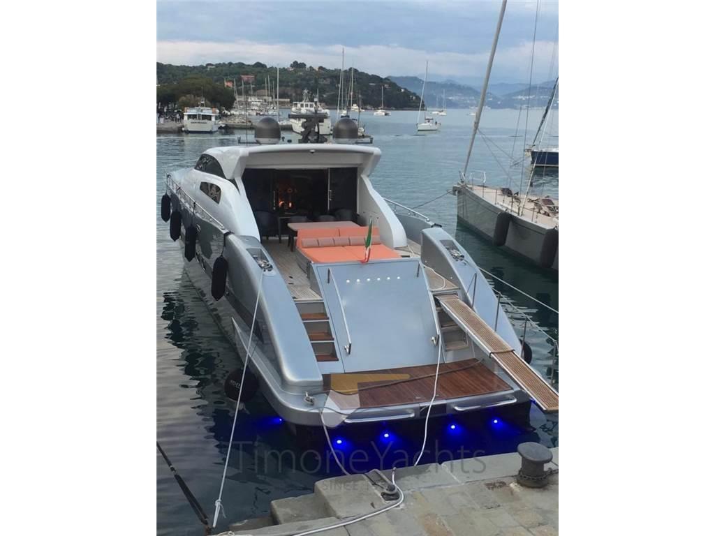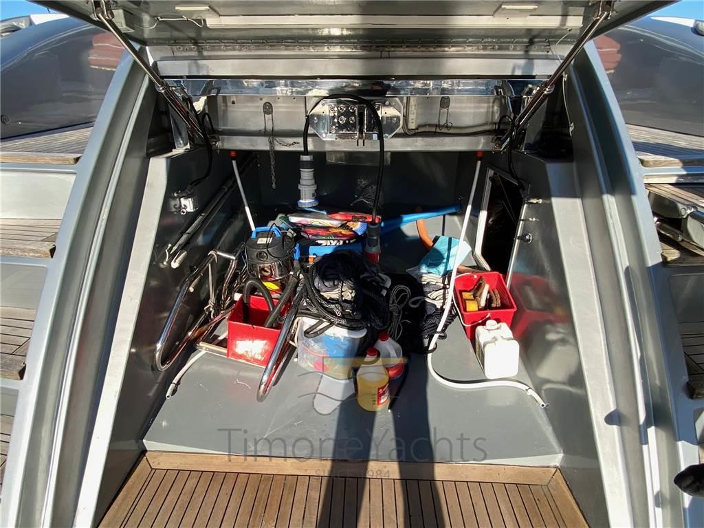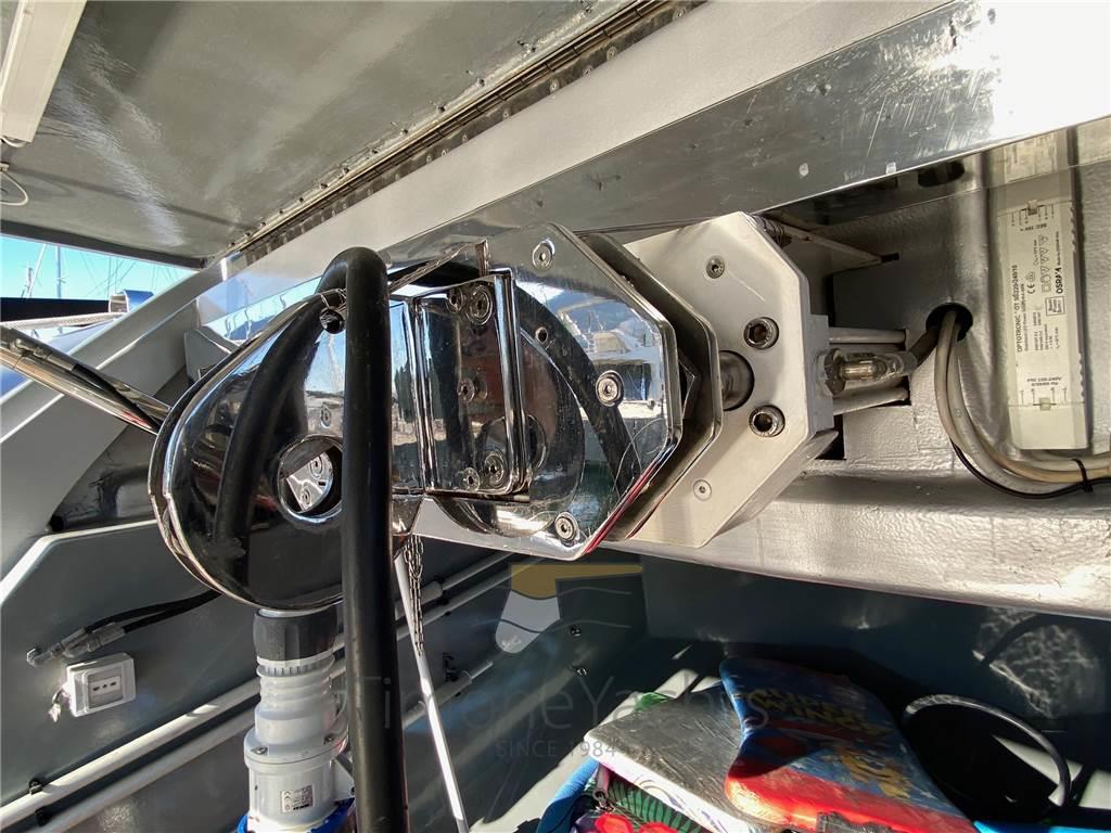 Notas de armamentoAllestimento tecnico e di coperta: Bitte Abbattibili, Camminamenti laterali in teak, Doccia esterna, Elica di poppa - stern thruster, Elica di prua - bow thruster, Faro orientabile, Flap idraulici, Garage per tender, Hard top, Impianto antincendio, Indicatori Flaps, Lavaggio catena, Luci subacquee, Passerella, 2 Porta laterale, Pozzetto Teak, Presa 220V banchina, Presa acqua banchina, Tavolo pozzetto, Tromba, 2 Winch tonneggio di poppa, Winch tonneggio di prua.