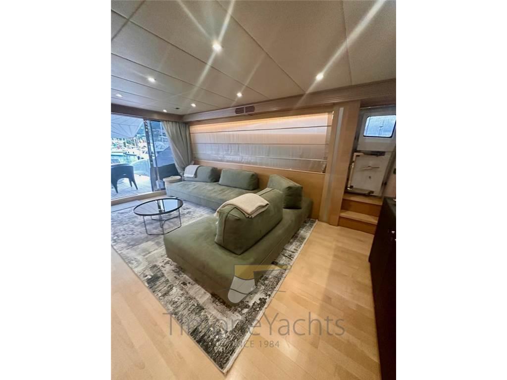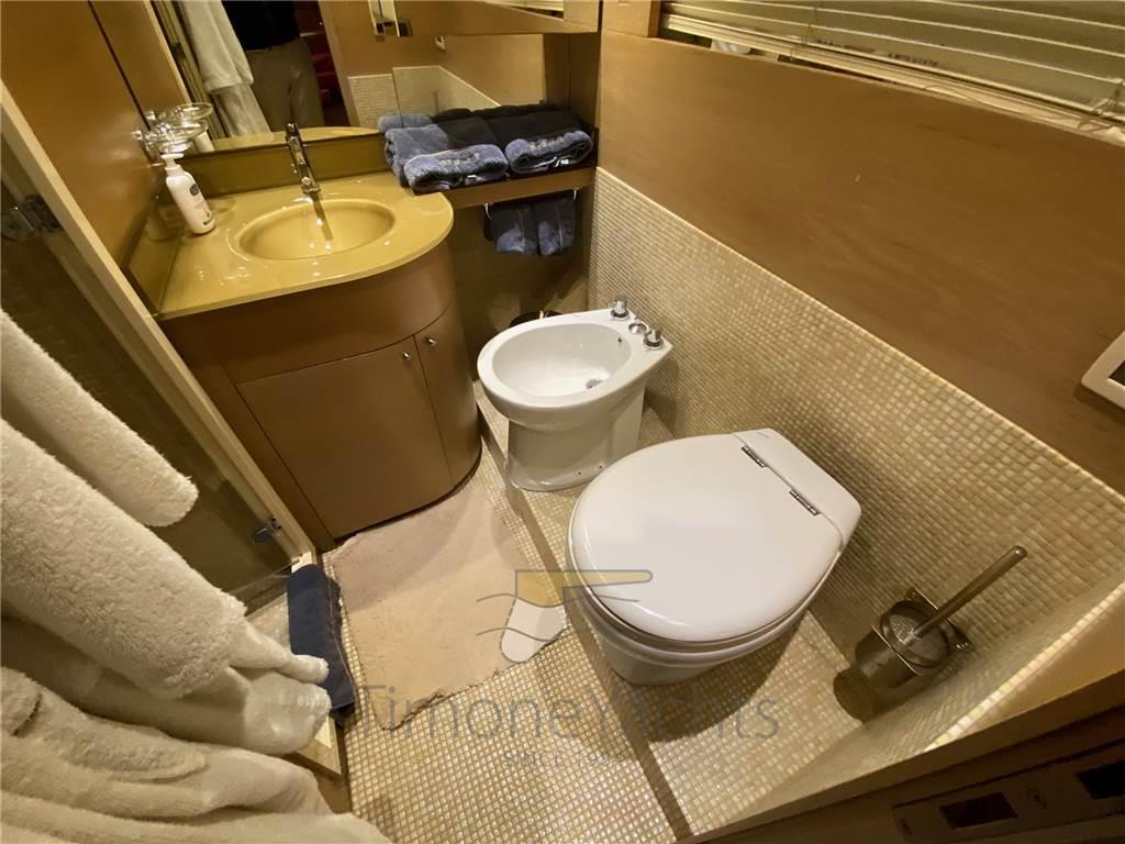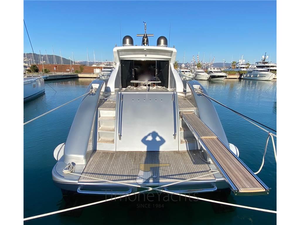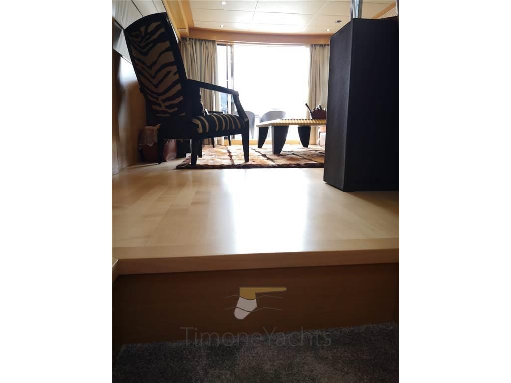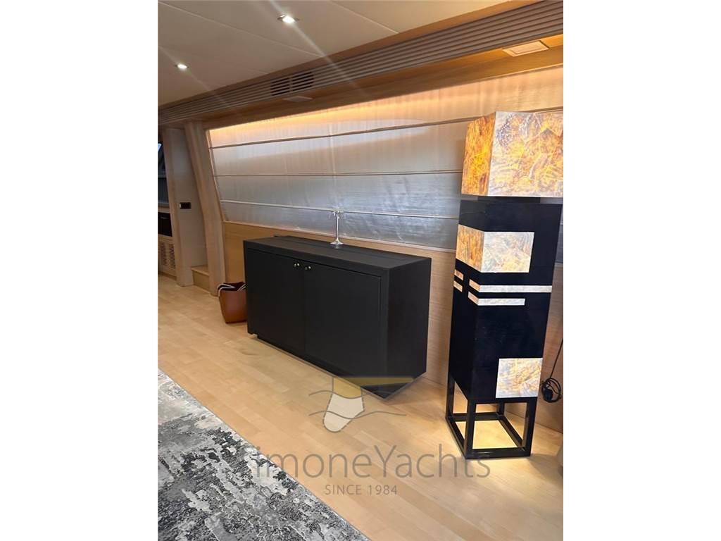 Notas de armamentoAllestimento tecnico e di coperta: Bitte Abbattibili, Camminamenti laterali in teak, Doccia esterna, Elica di poppa - stern thruster, Elica di prua - bow thruster, Faro orientabile, Flap idraulici, Garage per tender, Hard top, Impianto antincendio, Indicatori Flaps, Lavaggio catena, Luci subacquee, Passerella, 2 Porta laterale, Pozzetto Teak, Presa 220V banchina, Presa acqua banchina, Tavolo pozzetto, Tromba, 2 Winch tonneggio di poppa, Winch tonneggio di prua.
