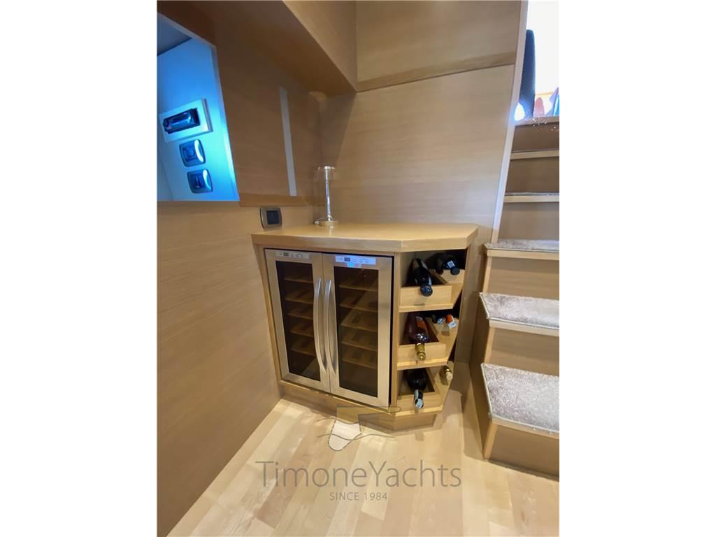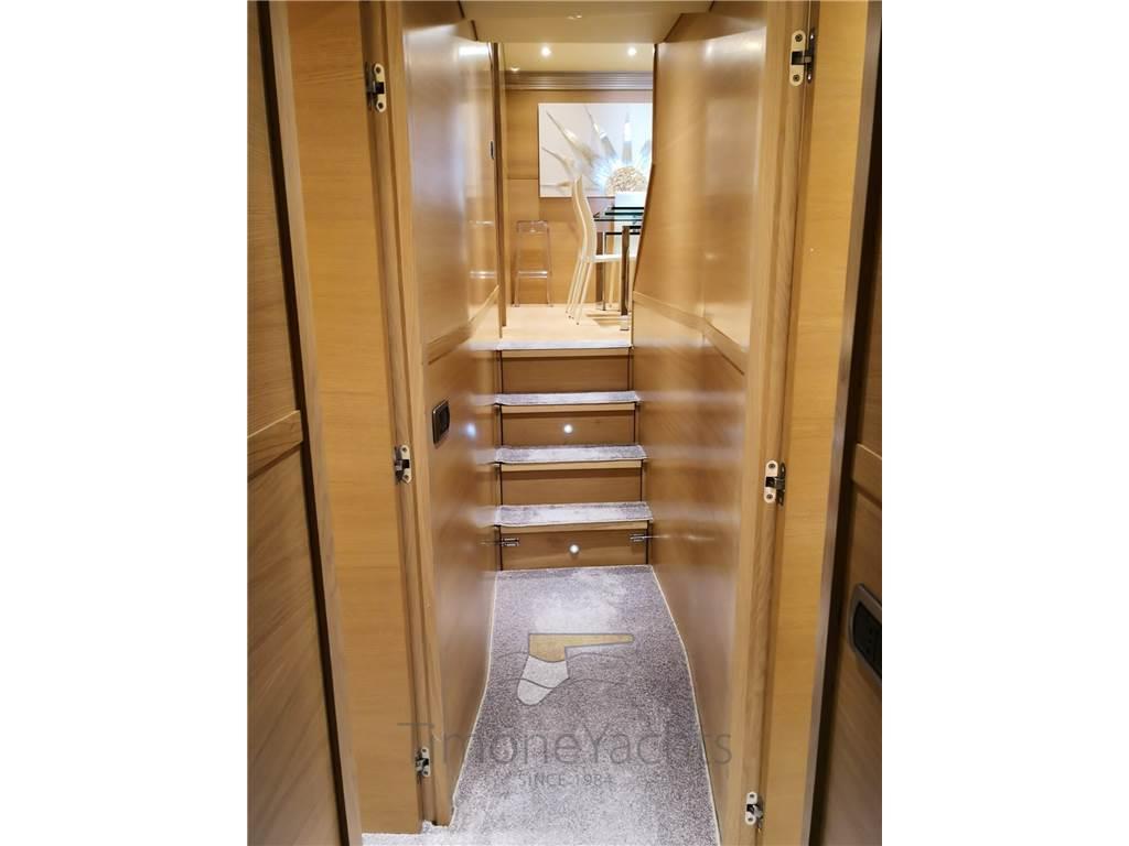 Notas internasIngresso dal pozzetto in un salottino arredato con grande estro che anticipa la zona guida, molto minimal e funzionale. Si sende al mezzanino che rivela una cucina magnifica ed una zona dining interna di grande gusto. Tre cabine ospiti magnifiche, matrimoniali e con bagno en suite. Zona crew a prua con doppio letto e servizi.