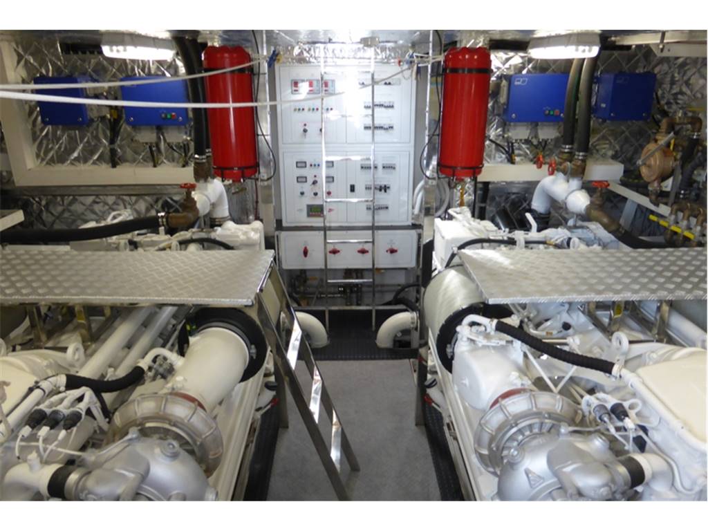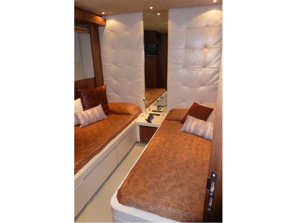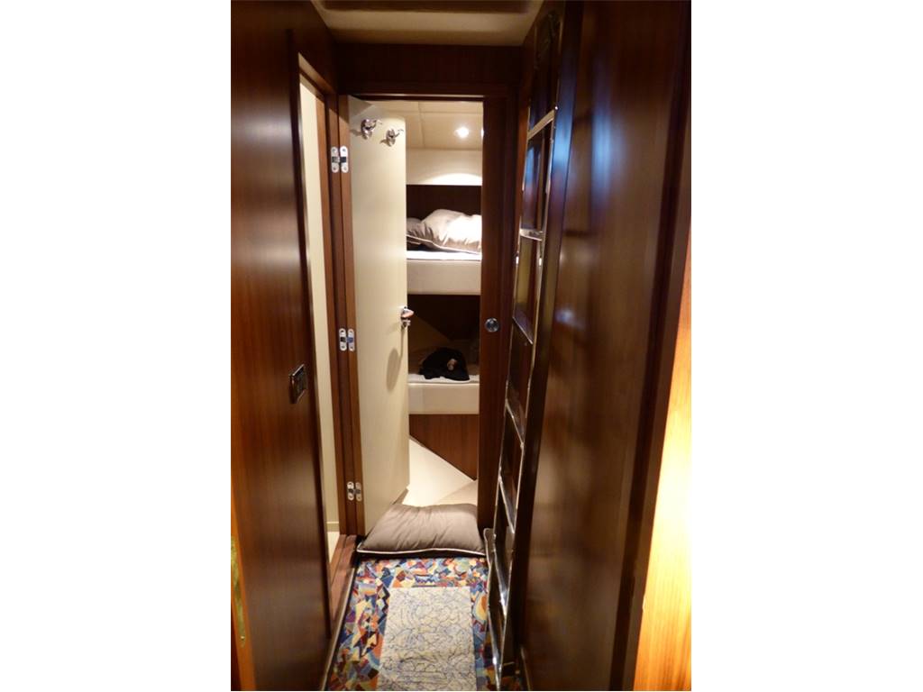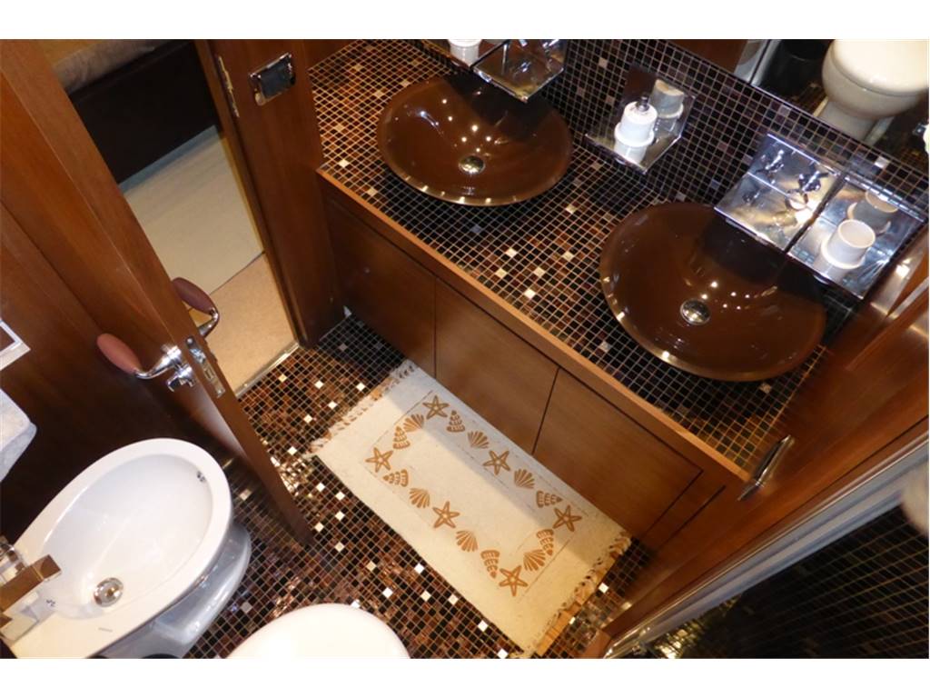 Notas internas-3 Cabin layout -2 Crew Cabins -1 Master cabin full beam + bathroom with big shower and chromo-therapy -1 Vip cabin with Queen bed + bathroom -1 Guest cabin with twin beds + bathroom - Open space with large dinette with open galley and peninsula with dining table - 2 Bow Crew cabins with TV and Stereo system + 3 beds + bathroom - Wheelhouse in main deck with sliding TV 50 inch and Bose system. Notas de la instrumentaciónStrumentazione elettronica completa FURUNO : Impianto computerizzato per gestione completa parametri navigazione : Log, Eco, Pilota automatico (temp. acqua, angolo di barra e bussola) - Plotter ,Radar e strumentazione computerizzata per gestione controllo check motori MTU , monitor per controllo telecamere interne - VHF Raymarine 240 E + 2 portatili , Tv LCd 17' - Impianto dolby surround Hifi con altoparlanti Bose e Home theatre , antenna Sat e decoder Sky , antenna per telefono sat. e internet , antenna radar 72 mg , manette elettroniche , computer gestione luci e indicatori livelli , doppio comando salpancora con contacatena.Notas de armamentoImpianto Telecamere a circuito chiuso , Ice maker , elica di prua e di poppa , Hangar tender idraulico , bimini in pozzetto e a prua , Passerella idraulica maggiorata a scomparsa Besenzoni, dissalatore Tecnomar 140 lt/h , tavolo con sedie in pozzetto, open deck di prua con divano prendisole e bimini, pozzetto e plancetta bagno di poppa in teak , 2 winches tonneggio a poppa, due generatori Kholer , Impianto di climatizzazione separato in ogni ambiente a doppia pompa di calore, ice maker,wine frigo, elettrodomestici completi di primaria marca con lavasciuga e lavastoviglie, Frigo con congelatore 140 lt., frigo in suite armatore, cuscineria prendisole completa divano di prua e prendisole di poppa , tavolo in teak pozzetto coprifinestrature e chiusura poppa - wc elettrici serbatoi acque nere - dotazioni di sicurezza complete x 12 persone- gruetta con verricello salpa tender a poppa con comando elettrico - tender Avon 4.00 mt consolle centrale con FB Yamaha 40 cv |