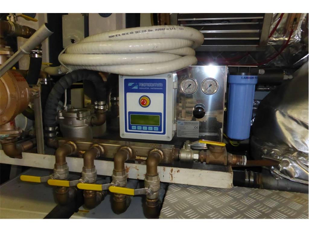 Bow and Stern Thruster Tropical air conditioning Domotics TV SAT, Bose system e TV Lcd Electrical appliances MIELE Engines and Arneson service Hydraulic Gangway with an extension of 5 mt 2 generators KOHLER 20 kw Water Maker FURUNO Electronics navigation Fresh water pump, battery charger and double boiler Bow and Stern bimini top Remote engine control station Bathrooms with Bisazza mosaic Underwater lights Stainless steel refrigerator / freezer Wine refrigerator Tender Avon + Yamaha 40 hp Electric crane in garage |