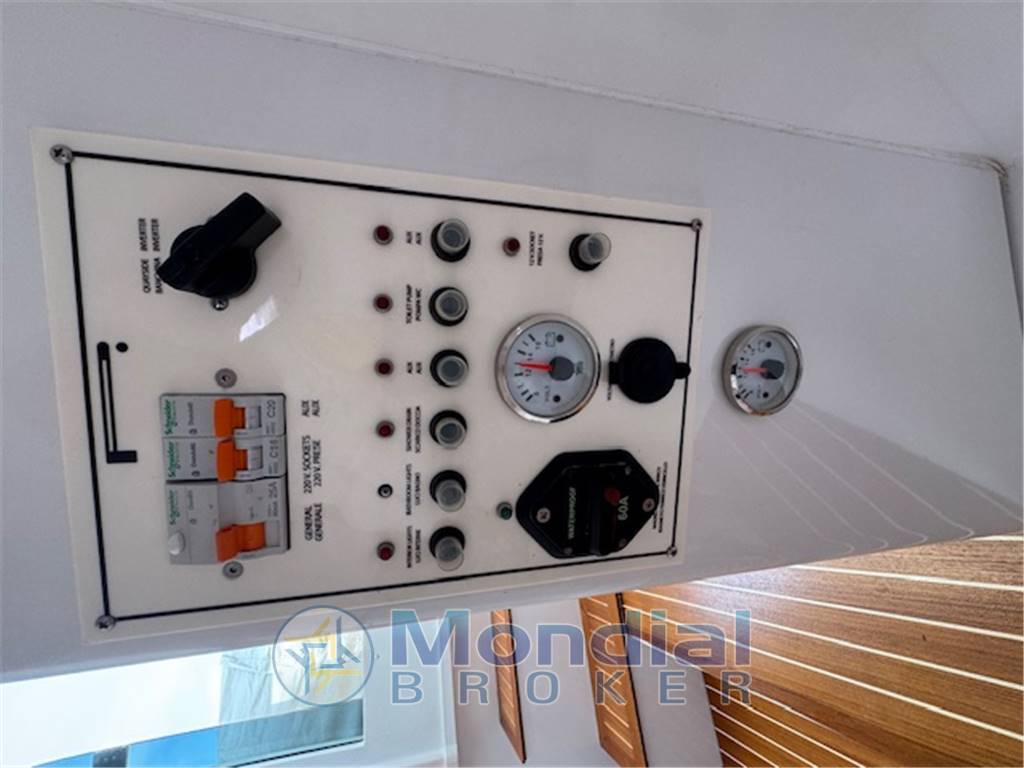 Notas de la instrumentaciónManette elettroniche – Verricello elettrico e catena – GPS – VHF – Impianto stereo – Scaletta bagno, Doccetta esterna – Frigorifero – Lavandino esterno – Cuscineria poppa e prora – Cappe chiusure cuscineria esterna – Annotazioni sicurezza