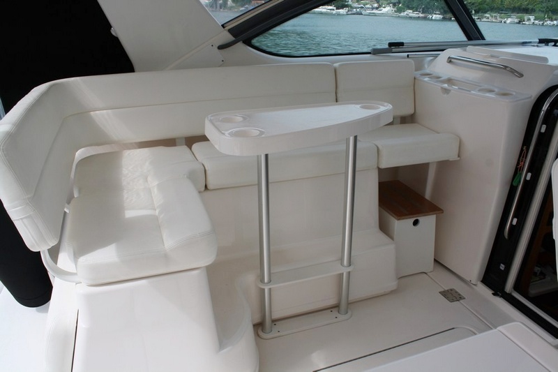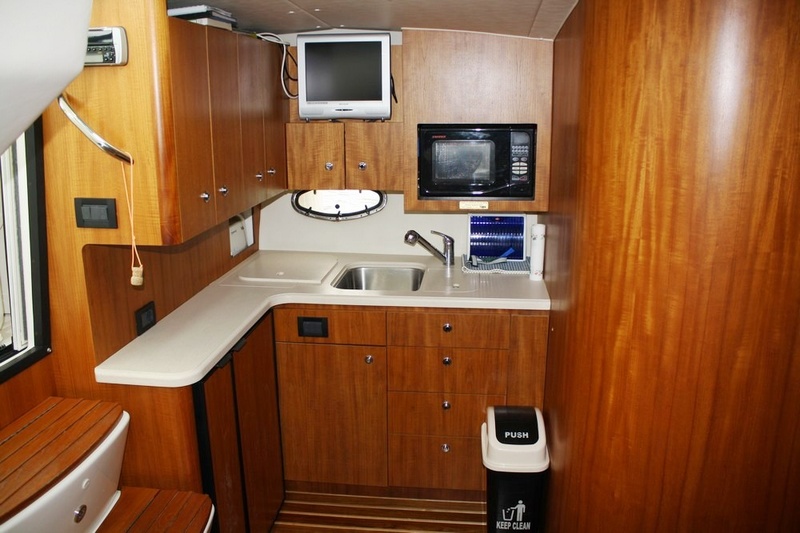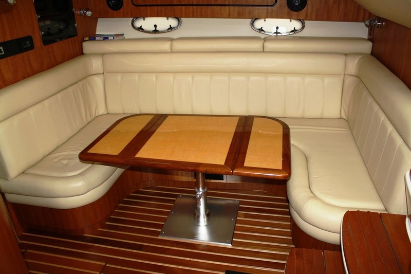 Notas internas-Teca Interior, sofá de cuero (Ultraleather), pisos de parquet. Notas de la instrumentación- Pantalla multifunción Raymarine C120 (radar / plotter / GPS) - piloto automático Raymarine ST61 - profundidad Furuno fcv600l sonda (color) - VHF Raymarine E230.Notas de armamento-Onan generador caliente y frÃo aire acondicionado duro superior y vertical toldo para cierre-bomba-eléctrica plancha, máquina de hielo y receptor en la cabina eléctrica Cable carrete agua directa muelle-Molinete (2010) - negro - agua sistema eléctrico motor compartimento Hatch-rociadores-travesaño sofá plataforma popa ocultar-N ° 4 varilla vaciado titulares-Rod titular de compartimiento con bloqueo en cabina luces popa proa cojines tomar el sol con pasamanos interior carpa sofá cama-separación estéreo Clarion CD N ° 2-LCD TV y balsas de seguridad. |