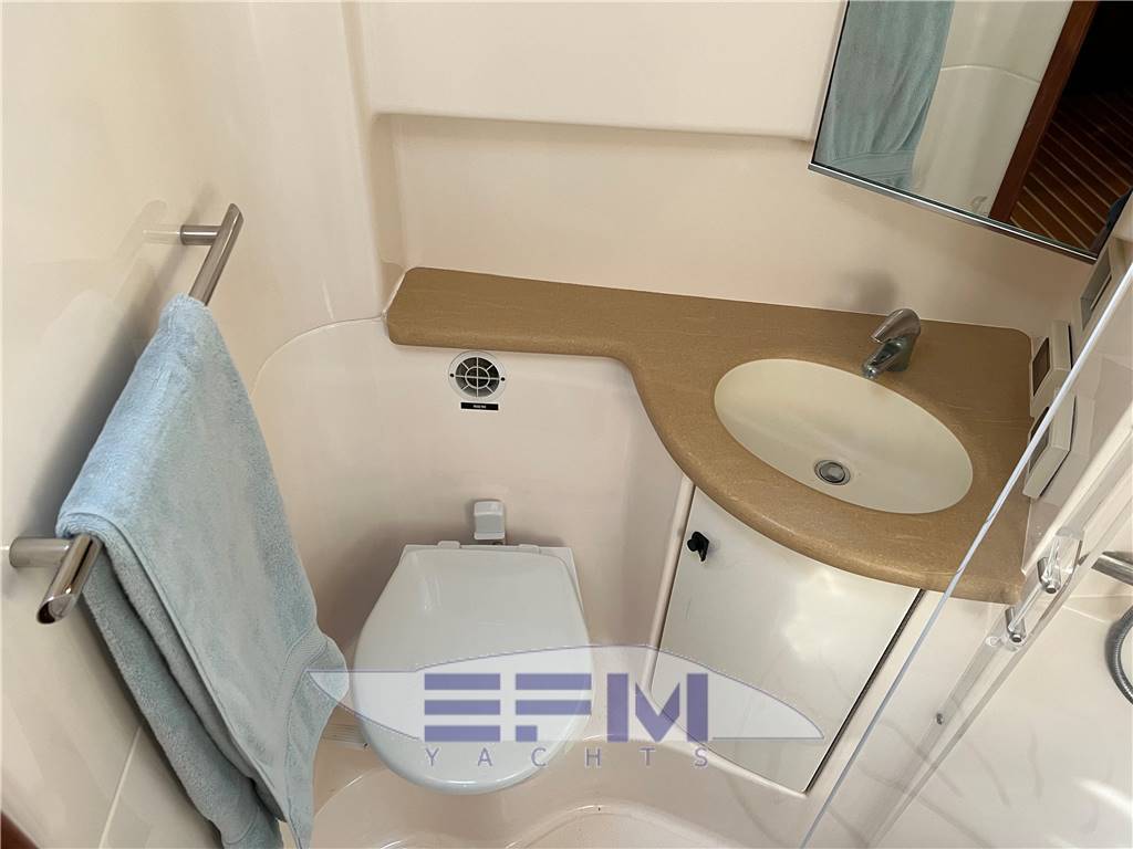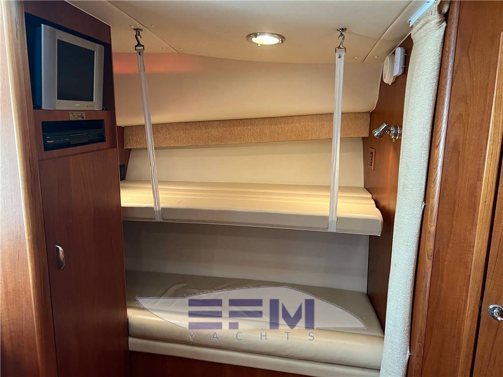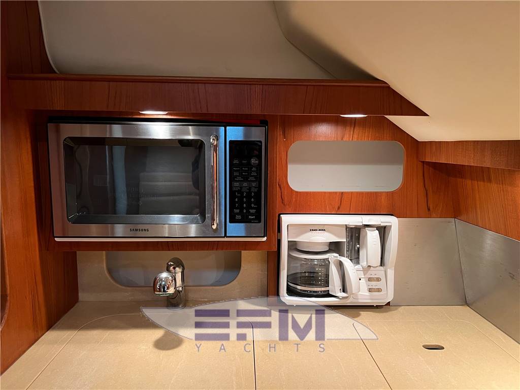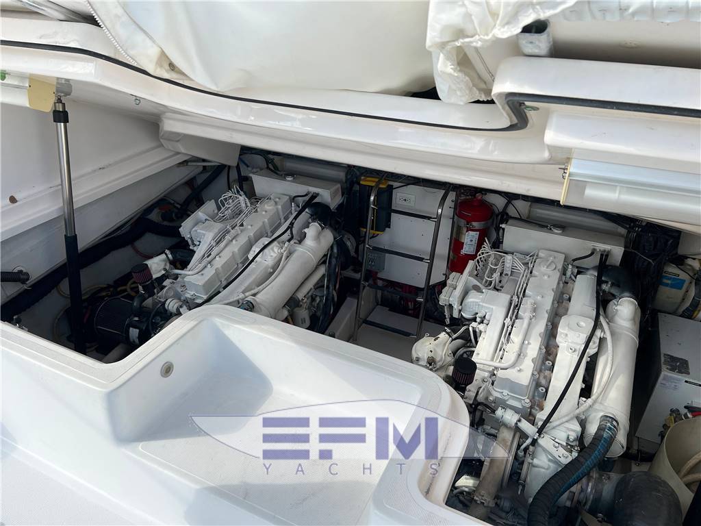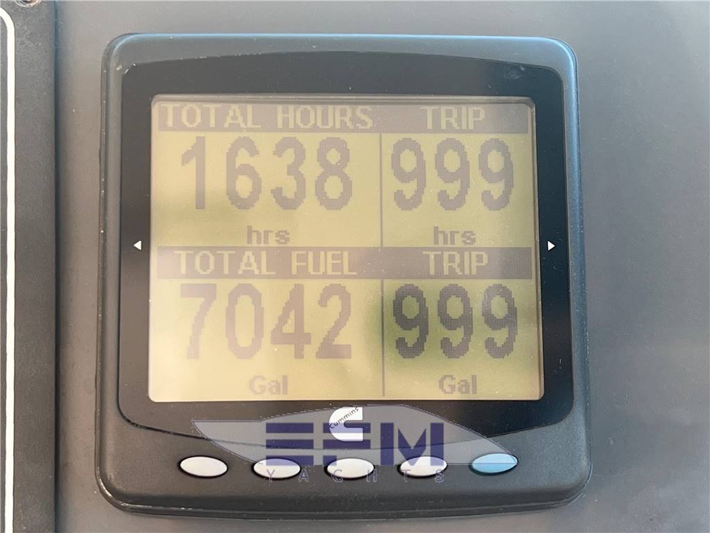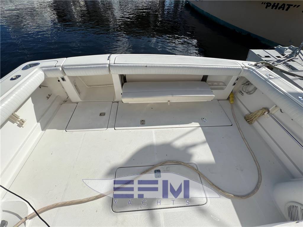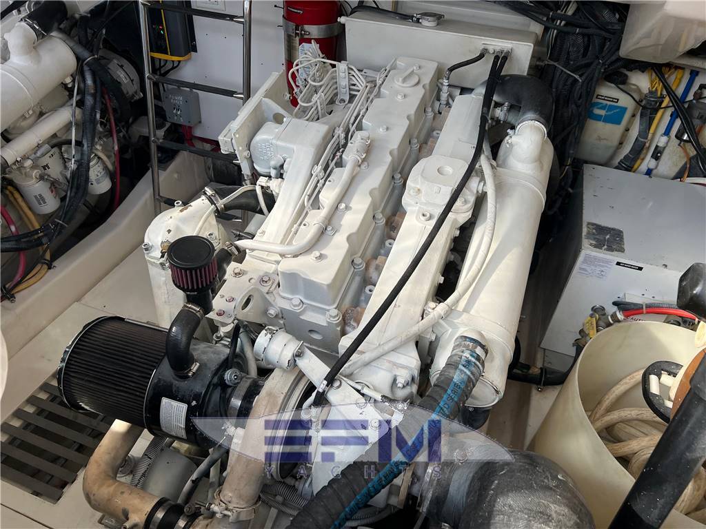 Notas internas• Features the Plan B layout with additional interior seating • L Shaped Ultra leather dinette converts to large berth with filler cushions • Teak storage drawer below dinette • High gloss high-low teak table with accented inlay • (2) Non fixed ultra leather stools with stainless steel mounting brackets • Ultra Leather Settee to port converts to over under style berths • (2) Privacy curtains separate the 3 sleeping areas • Clarion AM/FM/CD/Bluetooth Stereo • Sharp Aquos TV • Panasonic DVD Player • Large teak cabinet with (4) shelves. • (3) Hinged teak steps with storage and electric panel access below • Main AC/DC distribution panel • Teak and holly sole Galley • Corian countertops • Stainless steel sink with Corian cover • Stainless steel faucet with removable sprayer • Stainless steel backsplash • Forceio (2) burner electric stove with Corian cover • Samsung Microwave • Black & Decker Coffee maker • Nova Kool Freezer • Nova Kool Refrigerator • (2) Teak cabinets below countertop • Outboard storage cuddy • Teak shelf above Microwave • (2) Clarion stereo speakers • Bomar hatch with sun shade • Overhead light • (6) Under mount mini spot lights • Exhaust Fan • 110 GFCI outlets • Teak and Holly sole Master Stateroom • Center line queen sized island berth with gas assisted storage below • Upholstered headboard • (3) Teak cabinets overhead to port • (3) Teak cabinets overhead to starboard • Hanging locker to port • Storage shelf to port and starboard • Sharp Aquos TV • Digital AC control • Port and starboard reading lights • 110 GFCI outlets • Privacy curtain behind teak storage door • Smoke detector • Carbon monoxide detector • Bomar hatch with sun shade • (1) Overhead light • (8) Undermount mini spot lights • Teak and Holly sole Head • Vacuflush head • Shower with sliding acrylic door • Removable stainless steel shower sprayer • Corian counter top with storage below • Mirrored medicine cabinet • Bomar hatch • 110 GFCI outlet • Stainless steel grab rail • Teak door • (4) Overhead lights • Vent fan • Molded fiberglass liner Notas de la instrumentaciónForedeck• Stainless steel bow rail • Maxwell windlass with foot switches • (3) Stainless steel cleats • Danforth style anchor with rode and chain • Hinghed anchor locker • Navigation lights • Integrated bow pulpit • Hand rails on windshield • (3) Bomar Deck hatches • Nonskid fiberglass decking Helm Equipment • VDO engine gauges • (2) Cummins Smart Craft engine monitors (replaced 2022) • Simrad AP-22 Auto Pilot Control • Icom IC-M502 • Furuno Nav Net GPS/Radar • Raymarine ST60 Depth • Ritchie Powerdamp plus compass • Icom hand held Mic • Windlass control • Trim tab control • Horn • Engine shut down switches • Back up controls • (24) Breaker protected rocker switches Helm Area • Opening windshield vent • Power helm seat • Dual binnacle controls • Eisenglass from windshield to hardtop, as well as (3) piece drop curtains • Helm AC vent • Tilt away helm • Teak helm wheel • (2) cup holders • Fusion Stereo speakers • L shaped settee to port with removable seating • Large storage area under helm seating • Covered Fiberglass sink with storage below at starboard • (2) Overhead Bomar hatches with sun shades • (9) Overhead mini spot lights • Quick engine room access hatch • Electronic engine room hatch for easy access Notas de armamentoCockpit• Aft facing seating to starboard with wet bar forward • Fold down bench seat on transom • Bait prep area with sink and tackle drawers to port • (3) Piece drop curtain with center zipper entrance • Port and starboard molded entry steps • Shore power receptacle • 110 outlets • Under gunnel rod storage • (6) Fushmount rod holders • Transom catch well with pumpout • Transom door • Full beam fiberglass non skid swim platform with folding swim ladder • Fresh water shower • Fresh and salt water wash down • Flood lights • Courtesy lights • (3) cup holders at fold down seat • Subwoofer • Stainless steel hawse pipes • (2) Stainless steel cleats • Combing bolsters • Tiara Tournament fiberglass hardtop • (6) place stainless steel rocket launcher at hardtop • outriggers • Anchor light • Furuno open array radar • Nonskid fiberglass decking Electrical • 120/24 Volt AC System • 12 Volt DC system • AC/DC distribution panel • Pro • (6) Batteries • Promariner Pro Sport HD20 plus 20 amp battery charger • 50 amp shore power cord • Glendenning cable master • 9KW Onan Generator in sound shield Engine Room • Port and Starboard after coolers serviced 2022 • ZF transmissions • Automatic fire suppression system • Y-valve and macerator • Sea strainers • Reverso oil exchange system • Electric engine hatch • Dripless shaft seals • DC engine room lights • Water heater • Glendinning cable master • Racor fuel filters • Bilge pump |