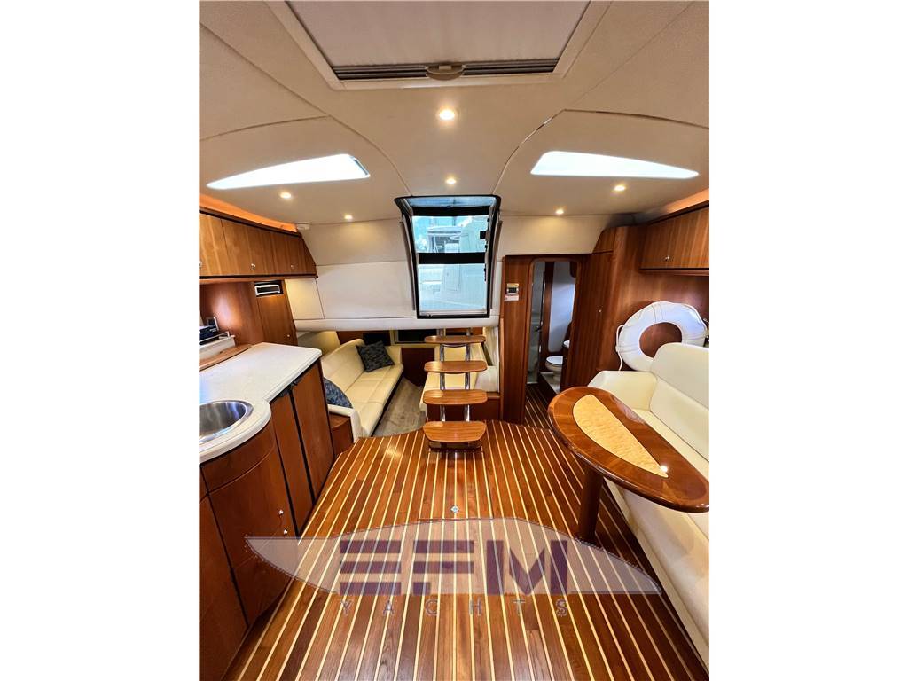 Notas internas• Dinette with two leather sofas facing each other under the wheelhouse • steel ladder with teak steps for access to the dinette • High-low table in polished teak with accentuated inlays • Two seater sofa in ultra leather and teak table in saloon • AM/FM/CD Stereo/Bluetooth Clarion • Sharp Aquos television • Panasonic DVD player • Large teak cabinet with (4) shelves. • Main AC/DC distribution board • Teak and holly sole Galley • Worktops in Corian • Stainless steel sink with Corian lid • Stainless steel tap with removable sprayer • Stainless steel backsplash • Forceio electric stove (2) burners with Corian cladding • Samsung microwave • Black & Decker coffee maker • Freezer • Refrigerator • (2) Teak cabinets under countertop • External storage compartment • Teak shelf above Microwave • (2) Clarion stereo speakers • Bomar hatch with sun blind • Ceiling light • (6) Undermount Mini Spotlights • Exhaust fan • Teak and holly sole Owner's cabin • Centerline queen size island berth with gas assisted stowage below • Upholstered headboard • (3) Teak cabinets top left • (3) Upper starboard teak cabinets • Hanger on the left • Storage shelf to port and starboard • Sharp Aquos television • Digital AC control • Reading lights to port and starboard • 220 CGFCI outlets • Privacy curtain behind teak stowage door • Smoke detector • Carbon monoxide detector • Bomar hatch with sun blind • (1) Ceiling light • (8) Mini undermount spotlights • Teak and holly sole Head • Vacuflush head • Shower with acrylic sliding door • Extractable shower in stainless steel • Corian top with underlying container • Mirrored medicine cabinet • Bomar hatch • 110 GFCI outlet • Stainless steel handrail • Door in teak • (4) Ceiling lights • Vent fan • Molded fiberglass lining Notas de la instrumentaciónForedeck• Stainless steel rail • Maxwell winch with foot controls • (3) Stainless steel cleats • Danforth style anchor with rod and chain • Locker still hinged • Navigation lights • Integrated bow pulpit • Handrail on the windscreen • (3) Bomar Decks • Non-slip fiberglass decking Rudder equipment • VDO engine indicators • (2) Volvo Penta engine monitor • Raymarine autopilot control • Raymarine Vhf • Raymarine GPS/PLOTTER • Raymarine Radars • Raymarine ST60 depth • Ritchie Powerdamp plus compass • Handheld microphone • Winch control • Tab trim control • Horn • Engine stop switches • Back up your controls • (24) Circuit breaker protected rocker switches Helm area • Openable windscreen vent • Electric command seat • Dual binnacle controls • Eisenglass from windshield to hardtop, plus (3) drop down shades • Helm air intake • Tilt the rudder • Steering wheel in teak • (2) cup holders • Fusion Stereo speakers • L-shaped sofa to port with removable seat • Large locker under the helm seat • Covered fiberglass sink with locker underneath to starboard • (2) Bomar overhead hatches with blinds • (9) Mini ceiling spotlights • Quick access hatch to the engine room • Electronic engine room hatch for easy access Notas de armamentoCockpit• 2 sofas with table in the transom • Drop-down curtain with central zipped entrance • Shaped entry steps to port and starboard • Shorepower socket • Transom catches well with pumpout • Aft door • Full-beam fiberglass non-slip swim platform with folding swim ladder • Shower with fresh water • Washing with fresh and salt water • Flood lights • Courtesy lights • (3) cup holders on fold-down seat • Subwoofers • Stainless steel chains • (2) Stainless steel cleats • Combing the bolsters • Tiara Tournament fiberglass hardtop • (6) place the stainless steel rocket launcher on the hardtop • stabilizers • Anchor light • Raymarine open array radar • Non-slip fiberglass decking Electric • 220/24 Volt AC system • 12 Volt DC system • AC/DC distribution panel • professional • (6) Batteries • Promariner Pro Sport HD20 plus 20 amp battery charger • Shore power cable • Cable Master Glendenning • 9KW Onan generator in soundproofing Engine room • Port and Starboard after chiller maintenance in 2023 • IPS broadcasts • Automatic fire extinguishing system • Y-valve and macerator • Marine filters • Reverso oil change system • Electric motor hatch • Shaft drip seals • DC engine room lights • Water heater • Cable Master Glendinning • Racor fuel filters • Bilge pump |