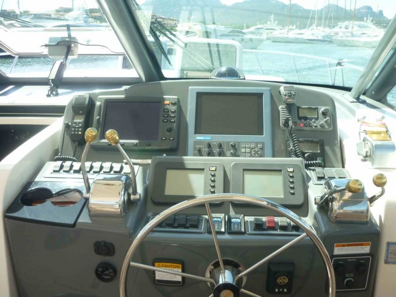 Notas internasCubierta: Agua cruda lavar abajo Molinete de ancla automático sistema de operación de cuerda/cadena con el pie del pedal sistema de cubierta de un conmutador de dremote al lavado de agua dulce de timón hacia abajo para marco de parabrisas compuesto de anclaje locker Tiara con vidrio templado,rieles de la mano de seguridad,poder abrir la sección central y 3 arandela limpiaparabrisas aluminio arco ferroviario travesaño escape antideslizante cubierta y cabina galera: Ecru Corian encimera fregadero inoxidable acero Recessed-cerámica encimera-22 "plana pantalla LCD TV (enfrenta el salón/comedor)-Novakool de microondas refrigerador/congelador-cafetera-Over y de archivadores cabeza: entrada de salón y camarote Corian encimera-apertura puerto luces ducha-receptor del propietario reflejado medicina gabinete Helm: Centro AC vent-Stidd 2-eléctrico asiento navegación con gráfico cubierta plana y bebida titulares combustible indicadores voltios metros-transmisión aceite presión puerto compañero lounge con consola de acero inoxidable titulares acero Tiara dirección personalizada blanco helm cooler & bebida aislado,superficie de la cubierta posterior de parabrisas Notas de la instrumentaciónElectrónica profesional: piloto automático (Raymarine Interface) - GPS (Raymarine C120 integrado) - mt de profundidad sounder 1500 Compass-professional-sistema Bose CD estéreo radio-Raymarine Ray215E Vhf-esposas Glendinning-BOWTHRUSTER-decodificador Lcd + DT (cabañas N ° 1 en 2 + comedor)-Stereo (alpino en cabina) interno Sockets 220v microondas planta TV (satélite) y digital terrestre de televisión-Home Theater-colgajo-hidráulicoEquipos electrónicos profesionales: piloto automático (Raymarine Interface) - GPS (Raymarine C120 integrado) - sonar profesional 1500 metros-brújula-sistema Bose CD estéreo radio – decodificador Raymarine Ray215E VHF Glendinning forma-arco-LCD TV + DT (No.1 + 2 en cabañas de salón) - Stereo (cabina alpina) 220v interior zócalos-microondas TV por Cable (satélite) y digital terrestre TV-Home Theater-hidráulico recortar las fichas - Equipos de motor y mecánica: Twin CAT C-715 HP 12-8kw generador fresca agua refrigeración motores principales y filtros de combustible Racor generador con agua seps Notas de armamentoPlataforma Premium con fibra de vidrio baño escala barco popa Sun-Drop cortina tengan portlights (Nº 4)-teca interior piso de placas de cerámica madera en cabina-cabina Teka mesa convertible asientos en Sun-heladera con freezer, ducha en cabina-bomba con válvula Y-antena-ConnexusNegro agua marina WC-Nevera-Refrigerador de la planta eléctrica (máquina de hielo y refrigerador en cabina **) - DVD - equipada (microondas) Congelador-calderas-aire acondicionado (doble ciclo) - Icehouse - Molinete-vivir (en titulares de varilla de lado del muelle (4)-puerta de entrada Bomba de sentina eléctrica automática bilge bomba-plataforma (plus en VTR) - ultraligeros-Hard superior (con cierres laterales) pasarela kevlar - Bowtruster Fuera ducha-cojines-arco eléctrico-baterÃa-cargador Cable 4-Autoclave-Still-Alarm-Trumpet-tarpaulin-Fishbox- baño de teca, mesa en cabina teack, Molinete eléctrico, sofás de cuero, cabina, titulares de varilla 7 titulares 9 de varilla bajo duro livewell superior, divergente, techo duro con laterales transparentes, macerator, válvulas de tranvÃa, cojines, generador, bolardos retráctiles nadar-escaleras-adicionales. Además de plataforma de baño de fibra de vidrio con puertos de cortina-apertura de nado cabina escalera popa Sol-Drop (Ranked # 4)-placas de revestimientos cerámicos de piso interior teca en la mesa de teca de cabina en cabina asientos convertibles en sillas-heladera con congelador-cabina ducha-Macerator con y válvulas-antena-Connexus Negro eléctrico del sistema de agua marina WC-refrigerador interior exterior frigorÃfico (refrigerador y máquina de hielo en la cabina **) - DVD - cocina (microondas) Congelador-caliente-aire acondicionado (doble bucle) - Ice - Molinete de ancla-socket directo titulares de muelle varilla (en los largueros (4)-puerta de entrada Sentina eléctrica automática de la bomba de achique bomba-plataforma (GRP) - gángster pasillo ligero Kevlar-Hard top (con bloqueos de lado) - bowtruster Ducha al aire libre cortinas cojines arco-cargador de baterÃa cable eléctrico de 4 carretes-Autoclaves-más-alarma motor-trompeta-consola tapa-peces tanque- plataforma de natación, tabla de cabina, maquinilla eléctrica teack, sofás de cuero, los titulares de la varilla de 9 en la cabina, los titulares de la varilla 7 en el techo duro, puntales, livewell, techo duro con laterales transparentes, macerator, válvulas de tranvÃa, Proa cojines, generador, bolardos retráctiles escaleras adicionales. |