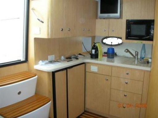 Notas de armamentoTV, 6 cañeros 2, aire acondicionado (doble bucle), caldera, congelador, cocina, arco, cojines, DVD, horno, nevera, congelador, máquina de hielos, Home Theater, hielo, aguas residuales sistema, televisor, microondas, estabilizadores, placa de cocción, estéreo, toalla consolas, válvula de Trolling, atún torre, vivo, tina bañera (con triturador), WC marino eléctricoOtro