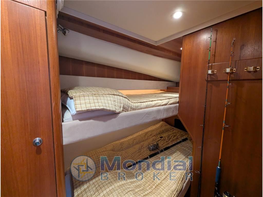 Notas de armamentoAltoparlanti, Antenna Satellitare TV, Aria condizionata (doppio ciclo), Boiler (bivalente), Clima reversibile, Congelatore, Cucina, Cuscineria di prua (2024), Decoder satellite, Digitale Terrestre, DVD, Fornello, Frigorifero esterno, Frigorifero interno, Giubbetti di salvataggio, Impianto acque nere, Impianto TV, Microonde, Oscuranti (2024), Outriggers, Pavimento interno in legno, Piastra in vetroceramica, Portacanne, Prese interne 12v, Prese interne 220v, Radio AM/FM, Serbatoio Acque Nere, Stereo, Telo copriconsolle, Tendalino (con candelieri in acciaio), Trolling Valve, TV (Smart LG salone), Vasca del vivo, Vasca pescato, WC marino elettrico, Zanzariere, Carena a zero, trattamento anti osmotico e nuovo primer 2024. Telecomando Glendinning per manovre dal pozzetto - Avvolgitore elettrico Glendinning cavo banchina. Impianto cambio olio motori.
