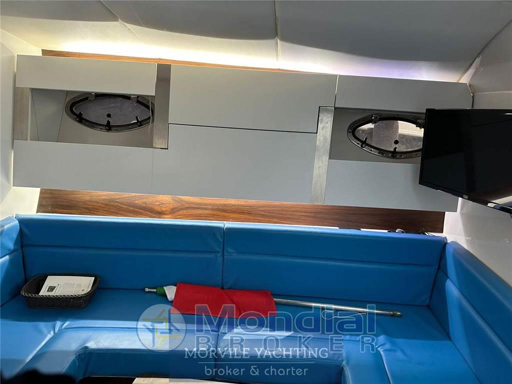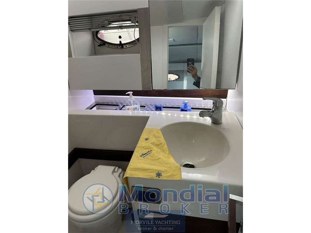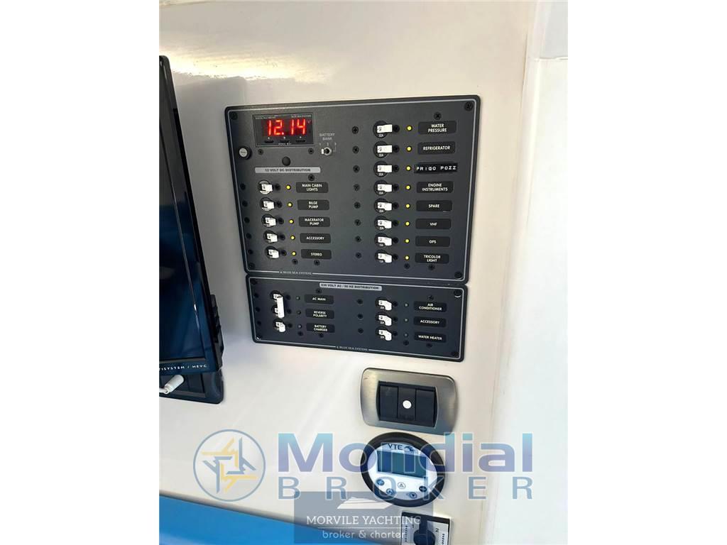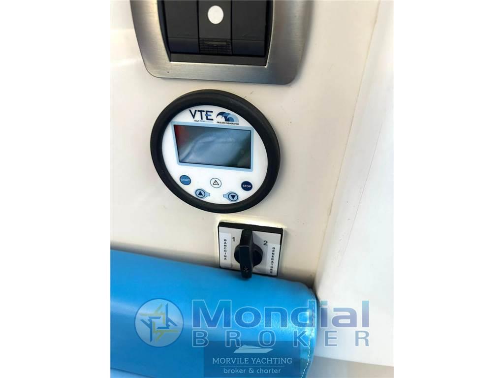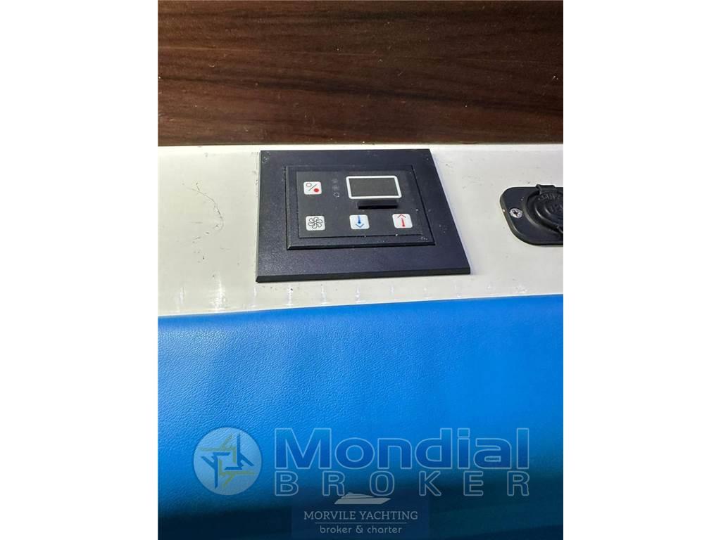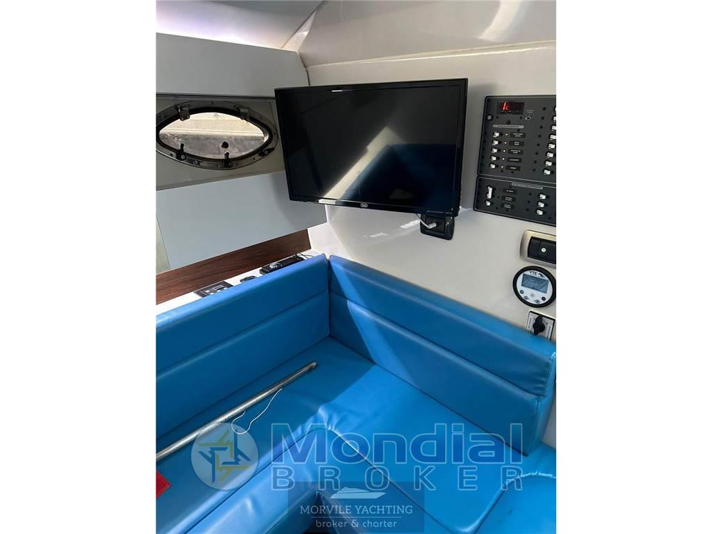 Notas internasCabine: 1 Toilette: 1 Impianto stereo Impianto TV Tv Bagni: 1 Cabine: 1 Notas de la instrumentaciónImpianto elettronico - Ecoscandaglio - Impianto TV - Plotter - Pilota automatico - Radio - Bussola - Lettore CD - GPS - Altoparlanti di pozzetto - VHF Pilota automatico Baromentro Bussola Comandi flaps Contamiglia Ecoscandaglio GPS GPS-Plotter Log Notas de armamentoCoperture/Tendalini- Tendalino pozzetto: + TELO COPRISCAFO Equipaggiamenti Elettrici - Presa corrente a terra - Generatore: 4 KW quipaggiamenti interni - Pompa di sentina elettrica - Pompa di sentina manuale - WC marino - Aria condizionata - WC elettrico - Riscaldamento - Acqua calda - Frigorifero - Caricabatterie Dotazioni Esterne - Pozzetto in teak - Doccia pozzetto - Cuscineria pozzetto - Tavolo pozzetto - Scaletta bagno Cuscineria Frigorifero esterno Scaletta: 1 Tavolo nel pozzetto |