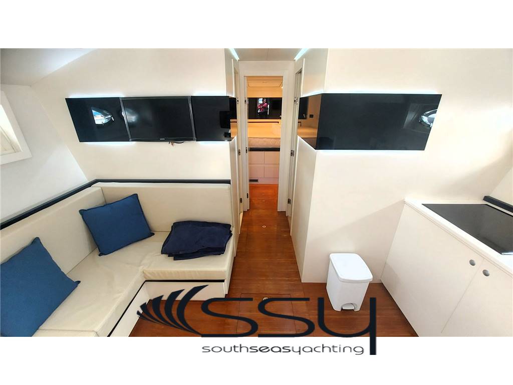 Notas internas- forward master double cabin with Samsung smart tv + twin guest cabin and large bathroom with separate box shower with chromotherapy; - separate crew cabin with its own entrance and facilities. - Comodo e spazioso salone con divano in pelle a “C”, smart tv Samsung, impianto stereo Fusion wifi e zona cucina contrapposta completa di piano cottura ad induzione e frigorifero Isotherm; - cabina armatoriale matrimoniale prodiera con smart tv Samsung, cabina ospiti doppia e bagno completo di box doccia separato con cromoterapia; - cabina equipaggio a poppa con ingresso e servizi indipendenti. Notas de la instrumentaciónVhf RAY 240E;Raymarine AXIOM 9 multifunction chart plotter; autopilot Raymarine P70S; rudder & flaps ind. level / ind. angolo di barra & flaps; Volvo Penta LCD display panel; Notas de armamentoManauver Joystick;electronic speed throttles; Quick TCD2042 bow thruster; EMI Dynamica 6kw generator; SBC 750NRG battery charger; Condaria Top Climate Air Co.; 2xSamsung tv; outside/inside Fusion wifi hifi with subwoofer & waterproof speakers; Isotherm cokpit refrigerator; bimini top + cockpit closing; Besenzoni hydraulic tender lift; Besenzoni hydraulic foldaway gangway; backlight name + underwater lights + courtesy lights; stainless steel Bruce anchor; full outside coverings & canvas; full emergency equipment. Joystick manovra; manette elettroniche; elica di prua Quick TCD2042; gruppo elettrogeno EMI Dynamica 6kw; caricabatterie digitale SBC 750NRG; aria condizionata Condaria Top Climate; 2 smart tv Samsung; hifi Fusion wifi con subwoofer e casse esterne impermeabili; frigobar pozzetto Isotherm; bimini top + chiusura pozzetto e tenda privacy; plancetta di poppa idraulica (tender lift) Besenzoni; passerella idraulica Besenzoni a scomparsa; nome retroilluminato + luci sommerse + luci di cortesia int/est; ancora Bruce in acciaio; tendalini e cappe completi; dotazioni di sicurezza complete. |