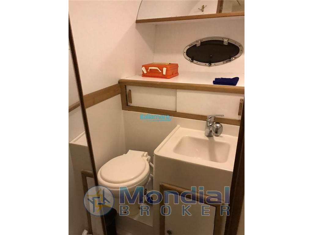 Notas internasNotas de la instrumentaciónAllarme motore, Allarme sentina, Ancora, Angolo barra, Batterie, Bussola, Caricabatterie, Colorazione speciale (BLU), Computer di bordo, Contamiglia, Display, Doccia esterna, Ecoscandaglio, Flap elettrici, GPS, Indicatori Flaps, Luci di cortesia, Piattaforma, Pompa di sentina elettrica, Presa 220V banchina, Presa acqua banchina, Scaletta da bagnoNotas de armamentoCucina, Cuscineria completa, Cuscineria di poppa, Cuscineria di prua, Cuscineria Pozzetto, Dotazioni di sicurezza entro 6 miglia, Fornello, Frigorifero interno, Impianto acque nere, Impianto TV, Prese interne 12v, Prese interne 220v, Stereo, Telo copriconsolle, Tendalino, TV, WC marino elettrico |