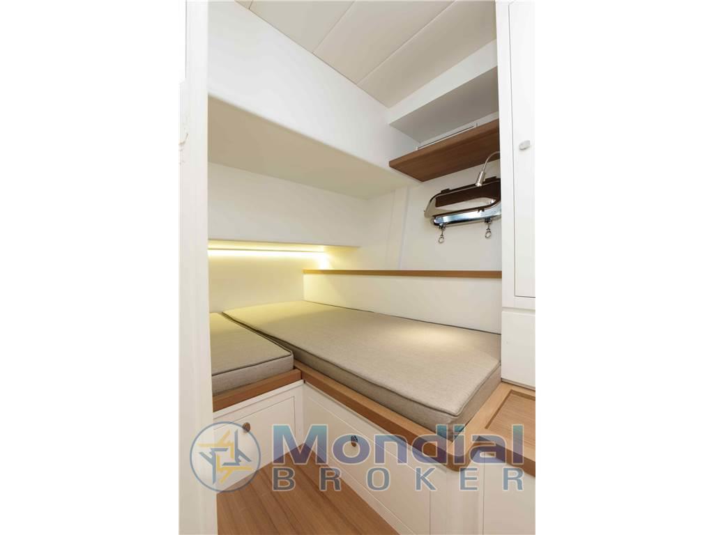 Notas internas1 Matrimoniale francese, 1 Cucina, 2 Toilette doccia no bidet, 1 Matrimoniale a V di prua Il Toy Tender 47 presenta interni spaziosi e ben distribuiti, con una cabina matrimoniale francese e una cabina matrimoniale a V di prua, entrambe pensate per garantire comfort e privacy. La cucina è funzionale e attrezzata per rispondere a ogni esigenza culinaria a bordo. Due toilette con doccia, senza bidet, assicurano praticità e benessere durante la navigazione, completando un layout studiato per vivere il mare con comodità e stile.