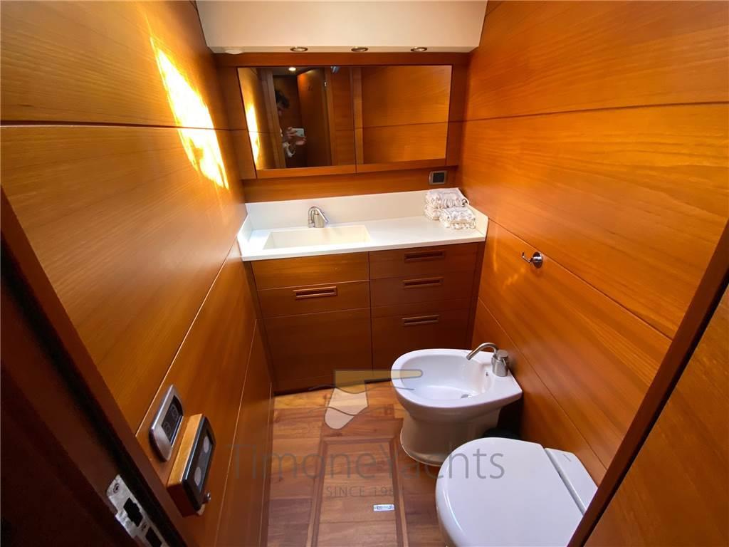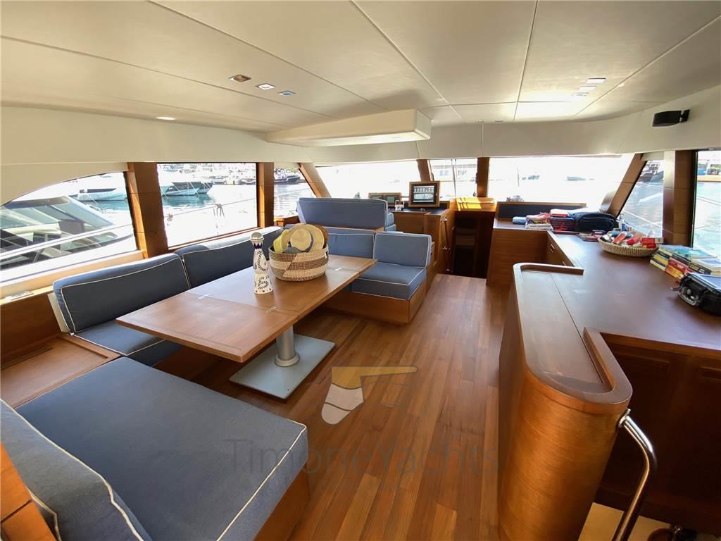Notas internasNotas de la instrumentaciónBussola, Computer di bordo, Contamiglia, Ecoscandaglio, Pilota automatico, Plotter, Radar (48M), Radio VHF (con Dsc e Gps asservito).Notas de armamentoAllestimento tecnico e di coperta:2 Allarme motore, Allarme sentina, Ancora, Colorazione speciale, Doccia esterna, Doppia timoneria, Elica di prua - bow thruster, Flap idraulici, Impianto antincendio, Luci di cortesia, Passerella (elettroidraulica), Piattaforma (con piano in teak), 5 Pompa di sentina automatica, Pompa di sentina manuale, Porta ingresso, Pozzetto Teak, Presa 220V banchina, Raddrizzatore, Salpa Ancore Elettrico, Scaletta da bagno, Tromba. Dotazioni domestiche di bordo: Aria condizionata, Clima reversibile, Prese interne 12v, Prese interne 220v, 4 WC marino elettrico. Intrattenimento: Altoparlanti, Digitale Terrestre, Impianto TV, Stereo, TV. Cucina ed elettrodomestici: Congelatore, Cucina, Frigorifero esterno, Frigorifero interno, ICE Maker, Piastra in vetroceramica (Miele 4 fuochi). Tappezzerie: Cuscineria di prua, Cuscineria fly, Telo copriconsolle. |