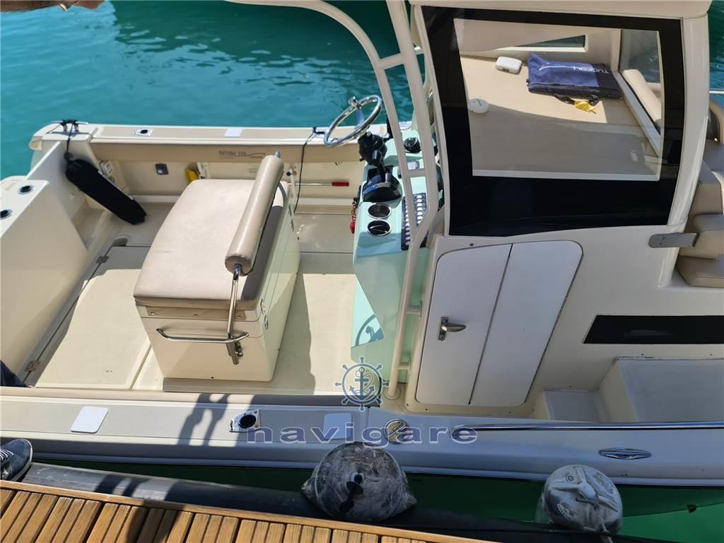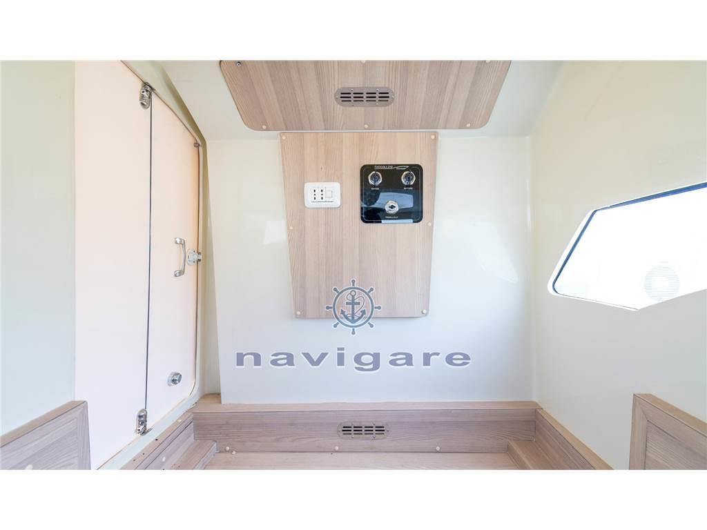 Notas internasNotas de la instrumentaciónAutoclave, Doccia esterna, Luci di cortesia, Pompa di sentina automatica, Pompa di sentina elettrica, Scaletta da bagno, Tromba, T-TopNotas de armamentoFornello (ESTERNO SOTTO SEDUTA GOURMET CON ACQUAIO ACQUA FREDDA), Vasca pescato (GAVONE DI POPPA CON SCARICO A MARE), WC chimico (STANDARD), Costruito secondo i rigorosi standard dei fisherman americani per renderlo rigido e longevo, con ragno strutturale che rinforza lo scafo e spessori del laminato in vetroresina variabili che vanno da 8 mm sul fianco a 15 mm sulla chiglia. Per la laminazione sono state utilizzate resine vinilestere e poliestere stratificate a mano. Mentre la coperta è stata progettata “a sandwich”, per limitare il peso mantenendo inalterata la resistenza. Le linee d’acqua, evoluzione delle leggendarie carene Tuccoli, sono pensate per affrontare le onde secche e ripide del Mediterraneo, per garantire sicurezza e massimo confort di navigazione. Perché sia tu a decidere quando uscire o quando rientrare, non il mare.DISPONIBILE ANCHE CON CONFIGURAZIONE DA CROCIERA (AVAIABLE CRUISING LINE) |